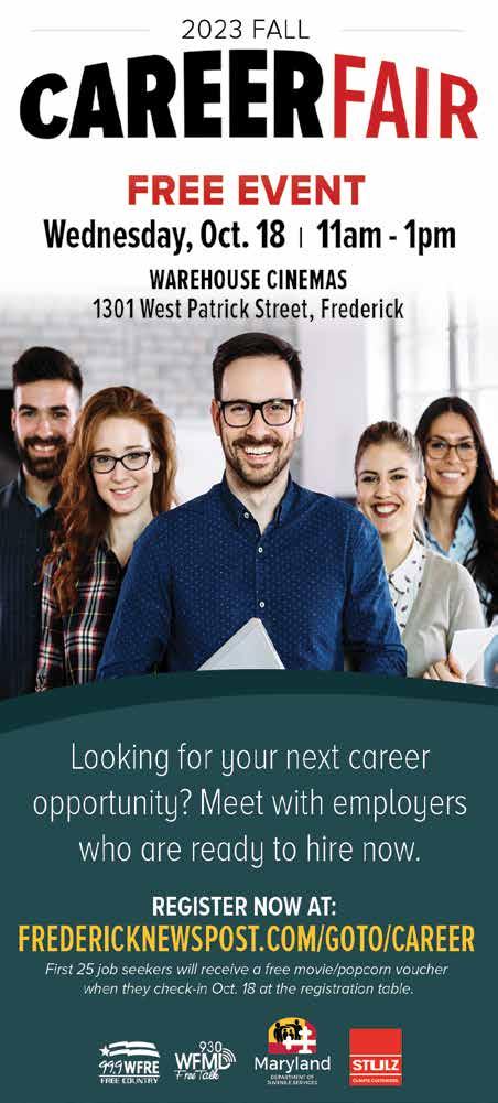 72 HOURS | Thursday, sepT. 28, 2023 | 25 SATURDAY OCTOBER 7 & SUNDAY OCTOBER 8 10AM -5PM BOTH DAYS THROUGHOU T DOWNTOWN BRUNSWICK Train Rides KIDS ACTIVITIES Food Vendors ARTS &CRAFTS VENDORS Business &Civic Groups BEER GARDEN Train-themed Exhibits AND MORE... Train Ride tickets will be sold ONLINE ONLY. SATURDAY,OCTOBER 7TH Main Stage: Brickyard RoadALynyrd Skynyrd Tribute Band 1-5PM SUNDAY,OCTOBER 8TH Main Stage: The Kelly Bell Band 2-5PM SATURDAY &SUNDAY Side Stage: Nathaniel Aguilar &Friends 10AM-1PM LI VE MUSI CF EA TURI NG WW W. BR UN SW ICK RA IL ROADDAYS. OR G WWW.FAC EBO OK. COM/B RU NS WICK RA ILR OA DDAYS •Tour our facilities •Meet with university representatives •Learn moreabout scholarships,student housing&more FIVE UNIVERSITIES. ONE LOCAL CAMPUS. OPEN HOUSE October 3 5 pm - 7 pm hagerstown.usmd.edu |240.527.2060