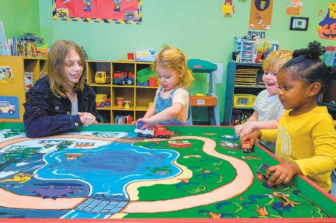 The path is a well-traveled one atop the train table at the Children’s Center of Walkersville. Here, the vehicles are driven in the hands of 2-year-olds, who gather around the table to traverse the path and the many adventures it holds.