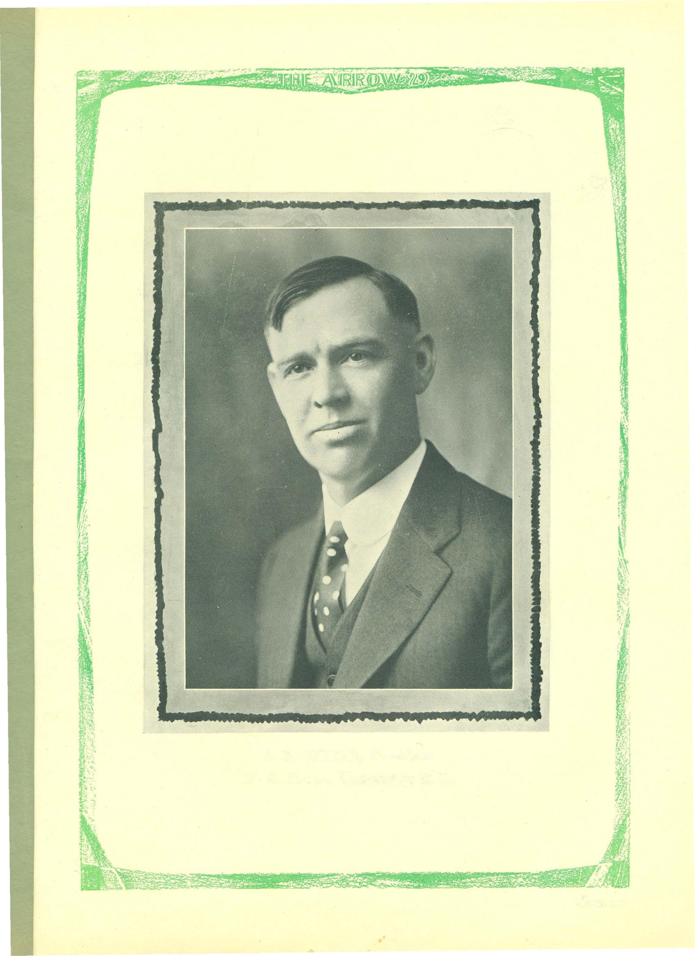 ALYlN R. AL1,ER Business Manager'1'0 Professor M. A. Wilson, Vice-president, who has stood by the school so faithfully for the past years, and who has clone much in secm'ing accrediting for our school, we take great pleasure 1 n dedicating this 1929 issue of the Arrow.