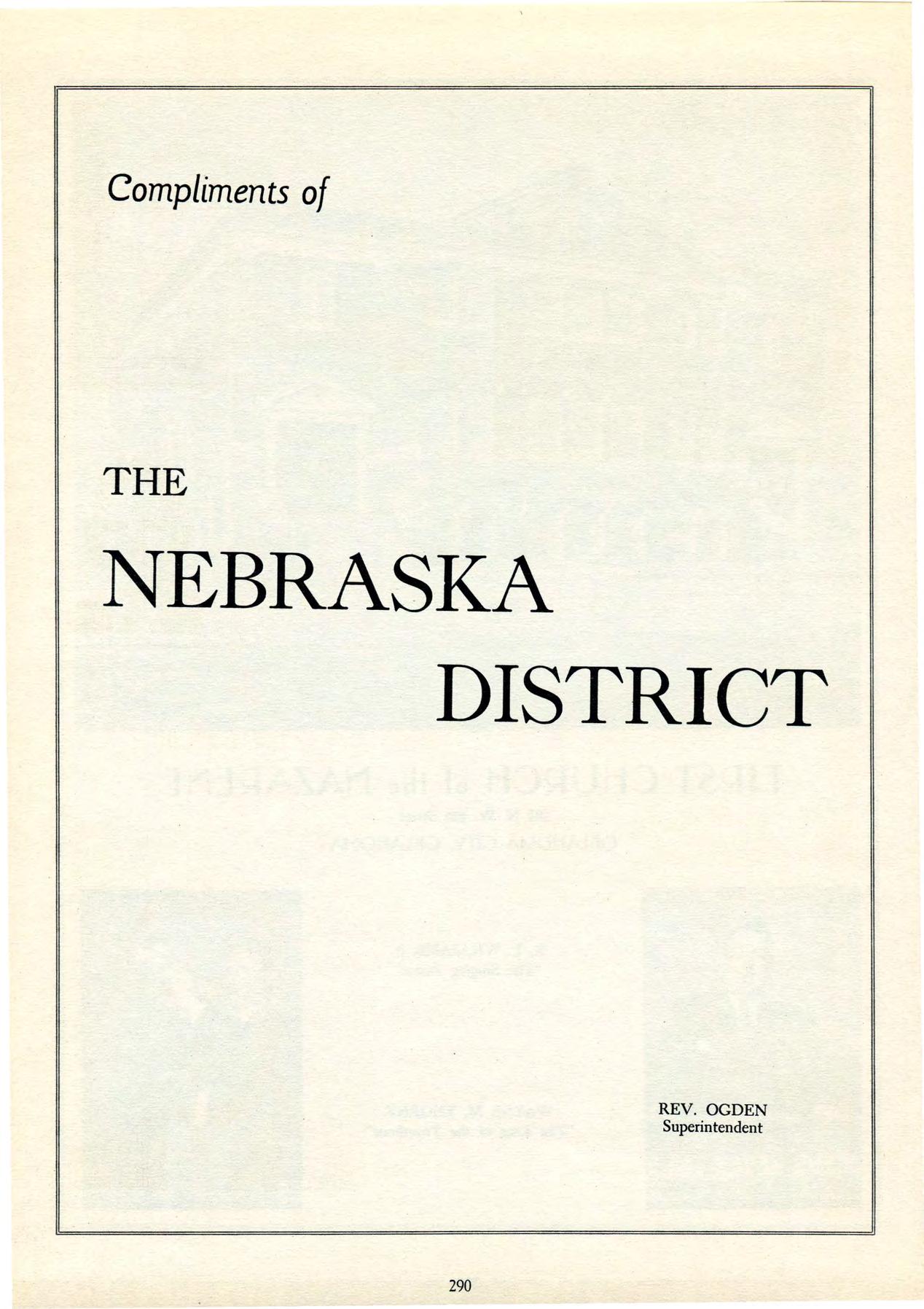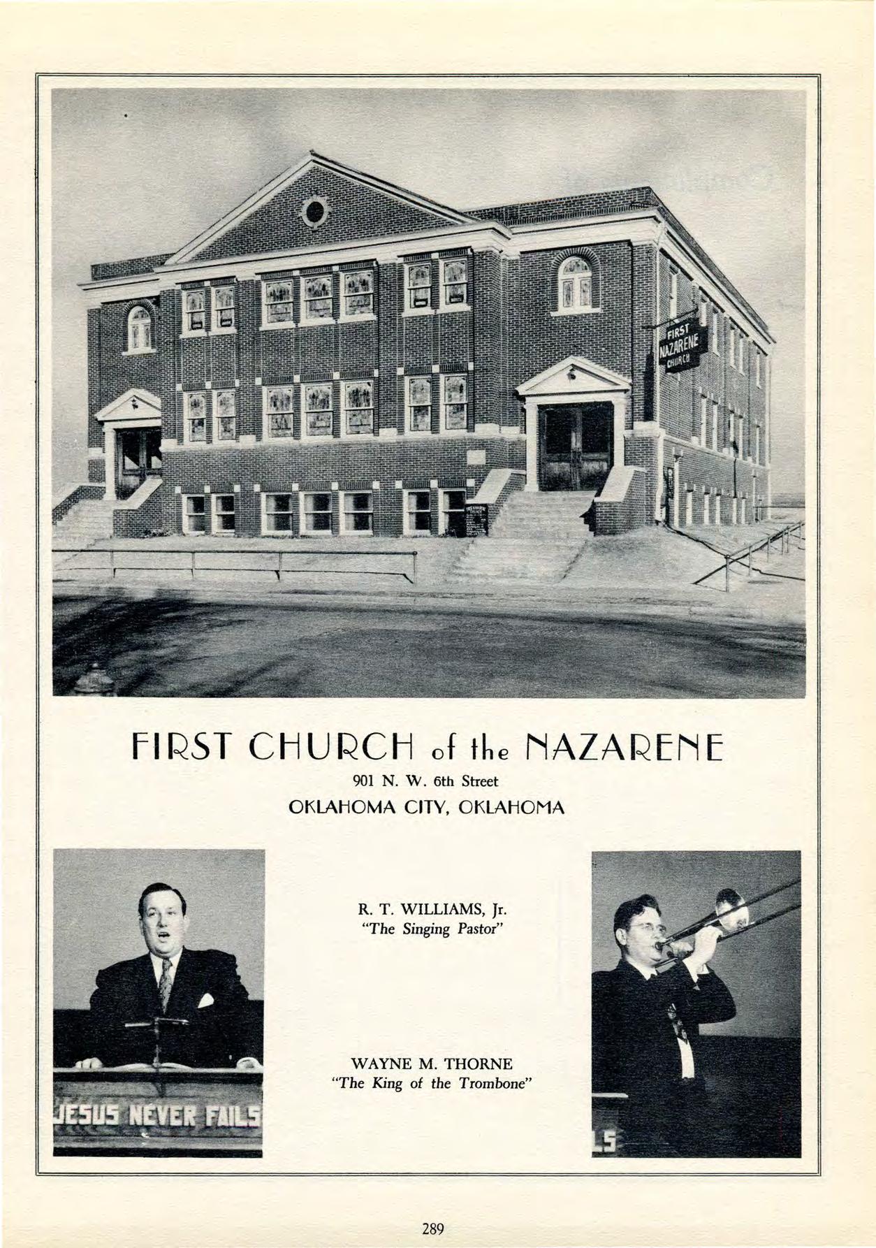 Kansas Cit y District 7 279 Kansas City First -------------------301 Lamar 278 Nazarene Publishing House ___________ 316 NEBRASKA Fairbury 278 Hastings 307 Nebraska District ___________________ 290 Nebraska N Y P.S. -307 OKLAHOMA Ada 309 Atwood 27 8 Bethan y Eastside - 306 First Church ____________________ 298 Bethany- Peniel College _______________ 299 Britton 307 Cherokee 278 Coleman Chapel 278 Comanche - 278 Durant 282 Eastern Oklahoma District ___________ 292 Erick 314 Fair view _ 278 Henryetta - 305 Hooker 27B Kingfisher 306 Lexington 315 Norman 308 Oklahoma City Crown Heights _________________ 309 Fair Park - 291 First .Church _________ 289 Ponca City 309 Poteau 314 Purcell - 313 Seminole - - 278 Tulsa Central - 291 Waterloo - - 296 Western Oklahoma Dist rict ______ 280, 281 Woodward - - 306 Youth for Christ ___________ 287 Yukon 296 TEXAS Abilene District _______________ 302, 303 Abilene First ----------------------304 Amarillo 29 5 Arlington 278 Austin - 314 Big Springs _________ 278 Borger 297 Cisco - 285 Corpus Christi _______________ 278 Dalhart - 278 Dallas District ___ 294 Gainesville 278 Hillsboro 317 Houston First - 313 Lubbock 286 North Fort Worth ________ 284 Port Arthur Post 313 Ropesville 278 San Antonio District ____________ 310, 311 Sweetwater - 278 Tyler - - 278 Wellington 283 LA ANNEX 321 ADVERTISEMENT-COMMERCIAL Acme Potato Chip Co. ______ 257 American Typewriters Co. ____________ 2 57 Barney Stewart Lumber ______________ 258 Bethany Cleaners ___________ 265 Bethany Commercial Club _ 263 Bethany First National Bank ______ 2.41, 242 Bethany Flower Shop ________________ 264 Bethany Food Market _____ 261 Bethany Moto r Co. _ 263 Book Shoppe, The _ 266 Brack McLain _________ 259 Bula's Beauty Salon, Mrs. __ 268 Cherry, L. C _____________________ 270 Clarence Tacket t Supply Co. __ 263 College Barber Shop ____ 259 College Grocery _____________ 252 College Shoe Shop ______ 261 Colonial Bread 259 Colonial Costume Shop ________ 246 Davis Grocery _ 265 Dee's Photo Suppl y ________________ 265 Eldridge Seed and Feed Co __ 245 First National Bank ________________ 2 51 Floyd Harris Typewriter Co. __________ 246 Frank Stores ___________ 248 Greene 's Ser vice Station ___ 245 Hal Owens - - - - - - 25 5 Hall-Hoag Agency - - - 245 Hancock Grocery and Market_ __ 249 Henry's I.G .A. Store ________________ 269 Higdon's Flower Shop and Nursery ______ 267 Hiram Paul's ____ 260 Jake's Service Station ___ 261