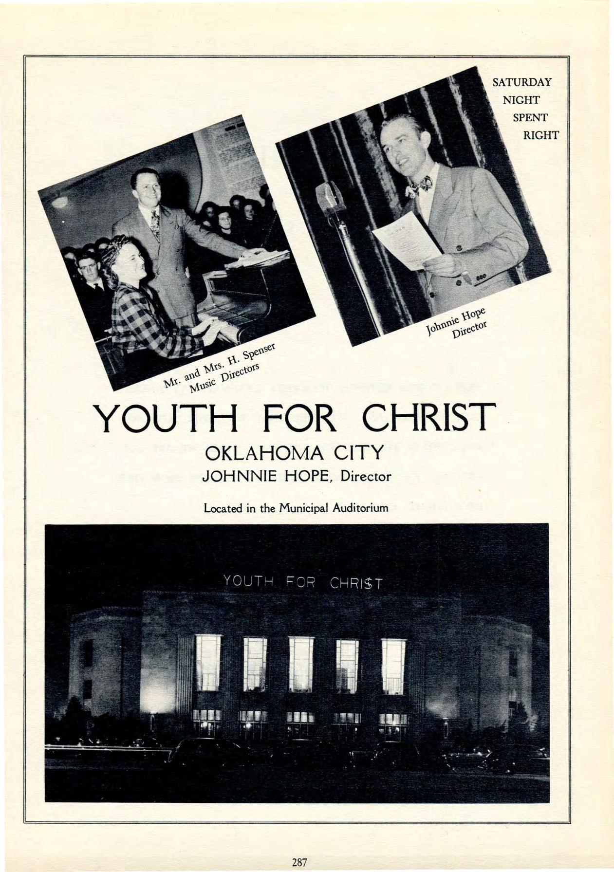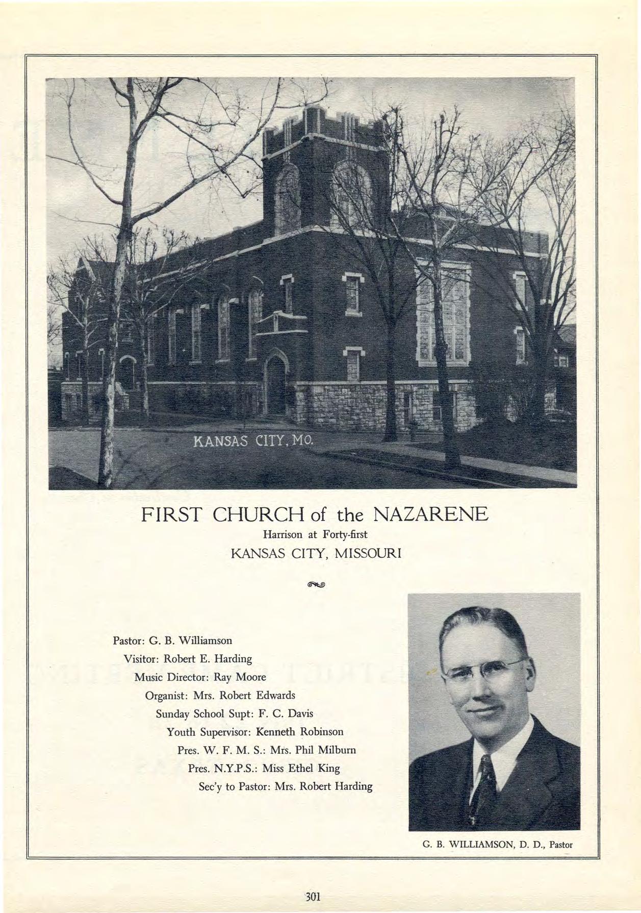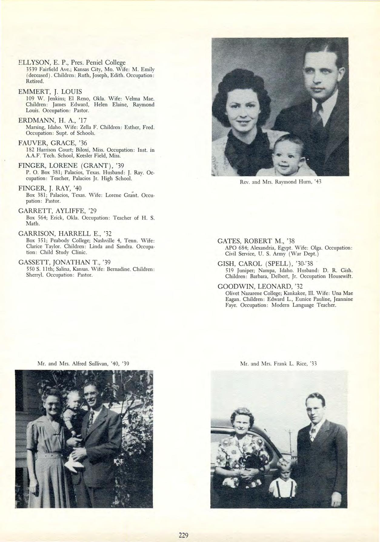 McConnell, C A. ___ 10, 11 , 280 McGraw, W. D. _ 17, 25, 75, 97 , 221 Moore, Jack __________________ 21 , 211 Nelson , Elizabeth ____ 31 , 98 , 184, 199 Phillips, Goldie _____________ 27, 235 Ripper, Harold ______ 7, 22, 36 , 96, 98, 214 Sears , Mariana ___________________ 24, 121 Shannon , Bo yd __________ 28, 132, 177, 191 Smith , Duane ____________ 25 , 184, 217 Snowbarger, Vernon ______ 29, 9(5, 98 , 109 , 120, 121 , 129, 173, 226 , 281 Spalding , Wayne __ 28 , 24 3 Strang, C B. __ 30 , 97, 171, 298 Taylor, Ruth __ 22 , 98 Thorne, Wayne _ 27 , 98, 200, 201, 208, 289 Welch, Harper_ __________ 21, 68 , 205, 214 Willis, E lizabeth _____________ 23 , 98, 187 Wiman, C H __________ 26 , 97, 178, 184 OFF ICE ASSISTANTS --------------3 3 STUDENT GOVERNMENT ______ 34 , 37 ADVERTISEMENT- CHURCH ARKANSAS .Alix - - - - - - - - - 278 Arkadelphia - - - - - 278 Arkansas District ______ 300 Little Rock ________________________ 293 320 EVANGELISTS Cri st , Wesley and Lyle _ 315 John so n, Spenser ___________________ 309 Jones, Mildred _________________ 307 Smith, Charles H ________ 285 Woolman , E. L. ______ 296 KANSAS Burr Oak - - 278 Chase __ 278 Ga0ord 278 Great Bend - 278 Grinnell 278 Independence - - - 278 Johnson - 278 Kalvesta - 278 Kansas Cit y 29 1 Kansas District ---------------------3 12 Larned - 278 Pittsburg - 285 Topeka 315 LOUISIANA DeRidder - 278 Lake Charles _______________ 278 Natchitoches 278 Shreveport 278 MISSOURI Ava - - - 278 Halltown - 278
