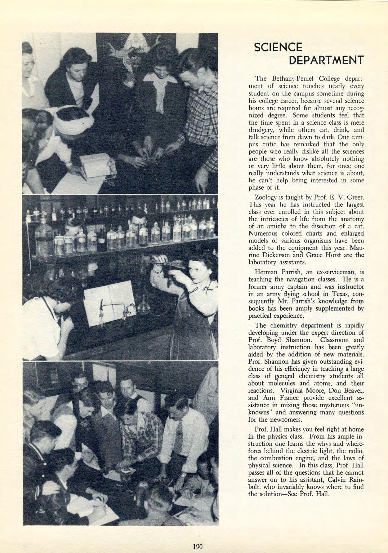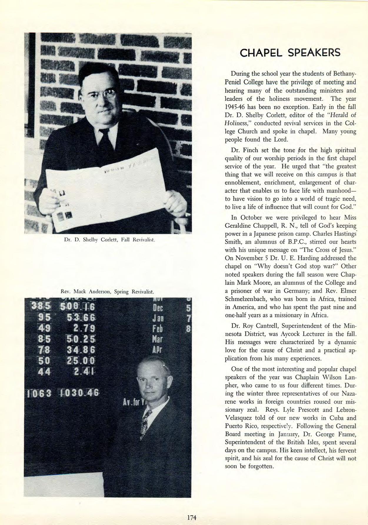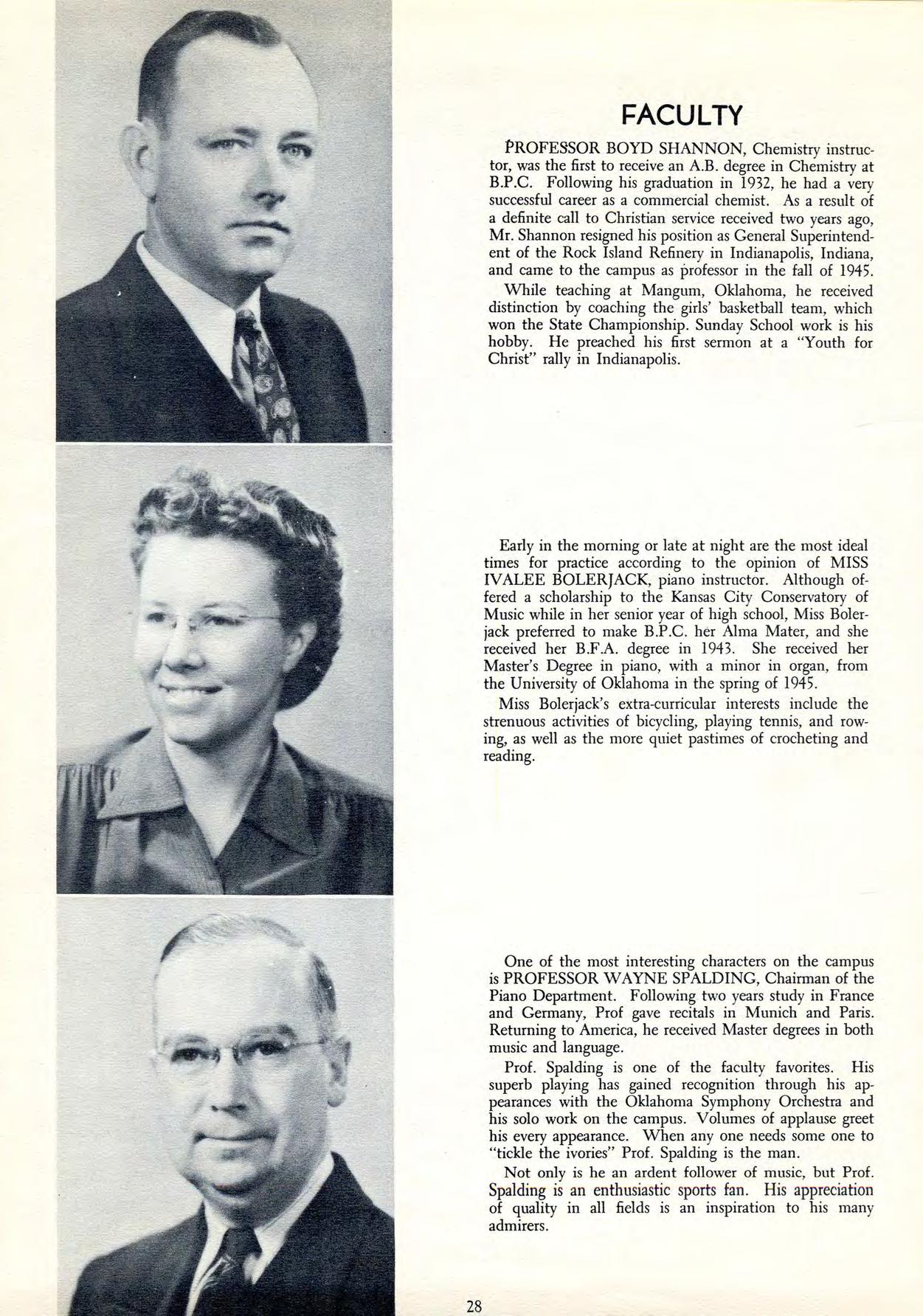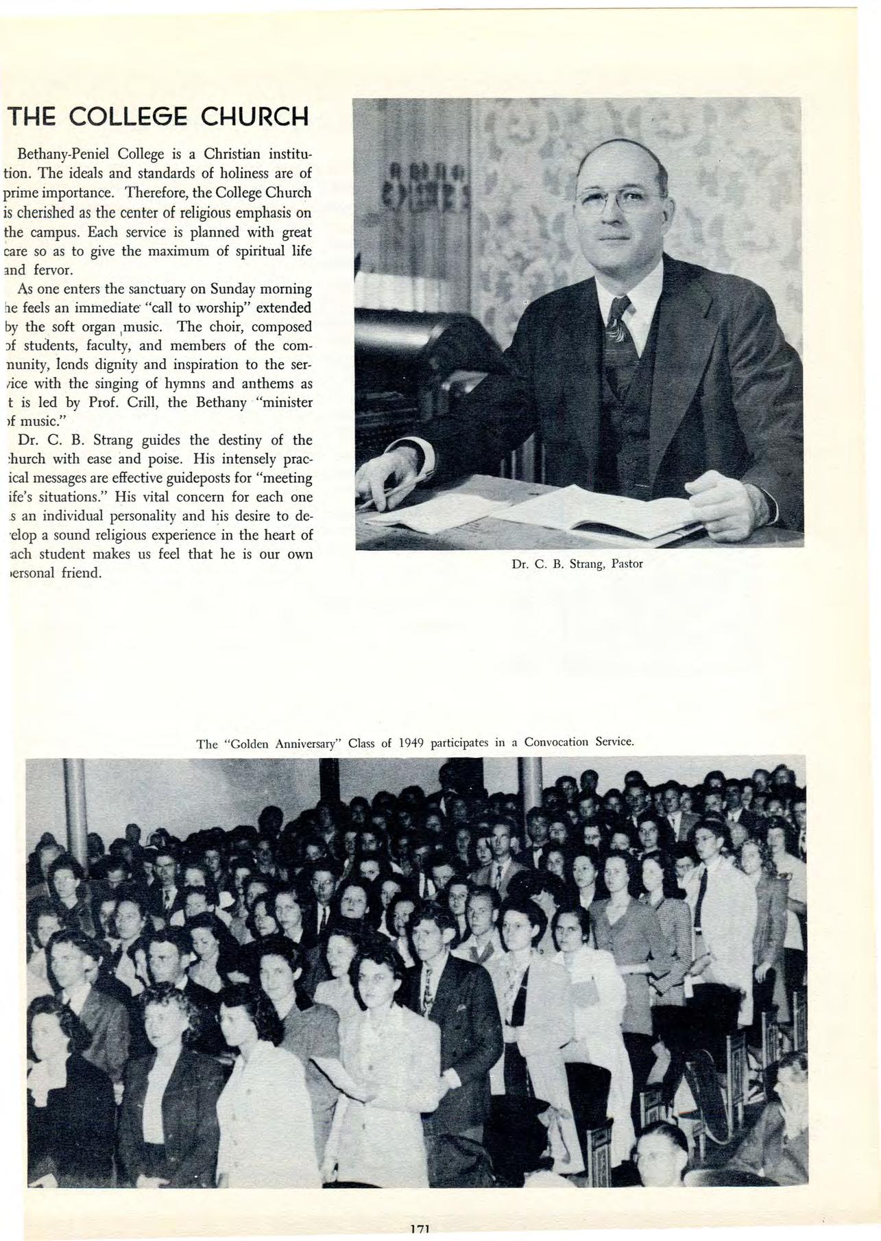 Following the pattern set by Christ as He "increased in wisdom and stature, and in favor with God and man," our Bethany Peniel College of today is striving to achieve in the lives of its students a fourfold purpose-mental, physical, spiritual, and cultural development. Thus, clues to the real riches of well-rounded living are in the possibilities of campus activities Guide-posts that point to successful futures are in the words that fall from the lips of professors and in the principles which were ingrained into this school with the first brick laid.