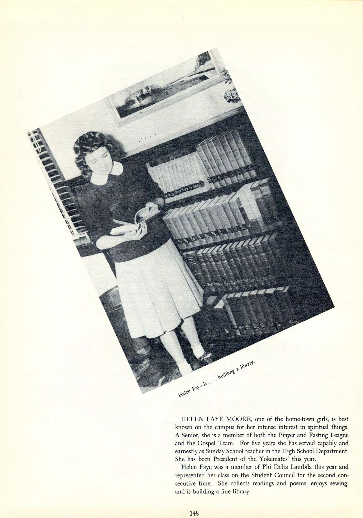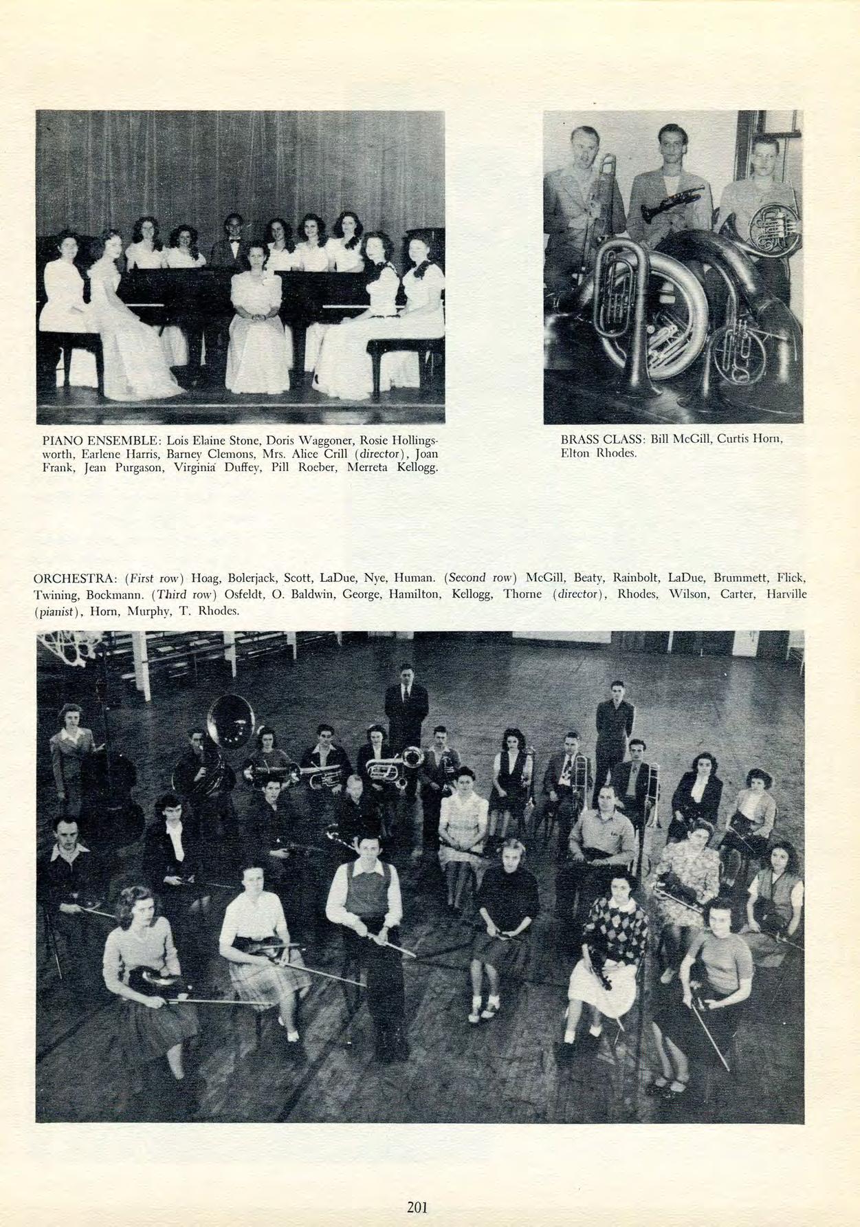 Hadduck , Edward (F) ______ 41, 47, 11 7, 134, 199, 202, 205 Hale, Deloris (So) __________________ 61 Hale, Elizabeth (So) ______ 61, 104, 173, 176, 177, 178, 199, 207, 209, 211 Hale, Evangeline ( Sr) ______ 79, 137, 199, 208, 211 Hale, Mildrene (F) ____ _47, 188 Haley, Iva Dell (F) _____________ _47, 199 Haley, Wilma (S r ) _79, 176, 198, 199, 222 Hall, Maurice (F) ______ 47, 96, 99, 114, 140 Hall , George ( F)------ - - - 9 Hall, J. Walter ( So) __ .c. _111 , 121, 176, 177, 202 , 267 Hamilton, Anna ( So ) ________________ 61 Hamilton, Jim (J) ______ 36, 68, 71, 110 , 113 , 11 7, 120, 132, 139, 200, 201, 206 Hamman , Melba ( F) ----------------57 Hanlon , Dorothy (F) ______ 48 , 138, 176, 177, 17 8 Hargraves, Charlotte (F) ______ 48, 136, 140 , 199, 273 Harper, Eva May ( Sp) __________ l34, 184 Harper, John ( Sr) ______ 9, 79, 110, 118, 179 Harris , Irwin (So ) ______ 61, 111, 116, 118, 120, 121 , 176, 17 7, 178, 186 Harris, Earlene (F) _48, 134, 190, 201 Harris, Maxine (F) ______________ 57, 200 Harrison , Charles (F) ________ 48 , 103, 293 Harriso n , Jack (Sp) ____ 48, 199 , 202, 217, 293 Harrison , Travis (F) _____________ 85, 177 Harville, Carroll (J) _71, 199 , 201, 206 Hatha way, Gwendolyn (So) _61, 296 Hathawa y, John (F) _,_ 48 , 141, 200, 217 Hathawa y, Noble (So) ______ 61, 136, 179, 296 Hathawa y, Patricia ( Sp) _____ 85 , 261 Hayes, Irene (Sr) ____________ 79, 200, 207 Heap, JoAnn (F) _ 48 , 123 , 124, 12 7, 128, 140, 200, 206 Henderson, Evelyn (F) --;----- 90 Henderson, Margaret (F) ___ 90 ; 219 Henderson, Willard (Jr) -,_-71, 117 Hendrickson, Phyllis (Jr) ______ 71, 137, 138 Heneger, Clarence (F) _48, 176, -177 , 178 Herrin, Mary Ellen (So) ______ 61, 121, 122, 124, 126, 128, 129, 137, 176, 177, 178, 207, 208, 211, 293 Hess, Norma Lee (Sp) ______ _,_ 86, 137, 247 Hieronymus, Martha (F)----'- - 33, 48, 176, 177, 178, 199 Hightower, Neil (So) ______ 5S, 67, 100, 111, 120, 134, 187, 199, 202, 293 Hillerman, Charles (Sp) - - ,--- ---86 Hinkle, Avis ( Sp) ______ 86, 177, 178, 180 Hinkle, Jo (Sp) ____ 48, 176, 177, 178 Hoag, Virginia (F) -48, 134, 201 Hogan, Glenellyn (Jr ) __________ 71 Holland, Lowell {F) ________________ 48 Hollingsworth, Johnnie (Sp) ______ 86, 293 Hollingsworth , Ted (So) __ 9, 36, 58, 61, 192, 293 Hollingsworth, Rasey (Sp) ____ 84, 86, 199, 201, 203 Hook, Francel (F) - ------------49 Hope, Stevie (Jr) __ 71, 141, 176, 198, 206 Horn , Celestine (So) _61, 198, 199, 219, 220 Horn , Curtis (F) _9, 49, 111 , 120, 134, 199, 200, 201, 217 , 262 Horn, Mary Jo (Jr) ______ 7 1, 121, 123, 124, 127, 128, 129, 134, 141, 176, 199 Horst , Grace (So) ______ 62, 176, 190 , 203 , 207, 208, 211 Howard, Valeta (F) - - 49 Howerton , Norman ( F) _____ 36, 41, 49, 96 , 100, 133, 134, 141 Hudgens, Evelyn (F) ____________ 90, 218 Hudson, James (Jr) __ 83, 110, 132, 179, 206 Huffaker, Ruth (F) ------------------90 Hull, Kenneth (Sr) ______ 79, 103, 110, 118 Human , Barbara (F) ______ 33, 49, 176; 201, 203, 273 Hyden, Vilata (Sp) --------------49, 199 -IIngersol, Carl (Sr) ______ 35, 79, 150, 176, 177' 178, 179 Ingle, Junella (F) _____ 90 Ingle, Adalene (F) - -49, 176 -JJames , Beverly (F) ________ 49 , 180 Janzen , Paulene ( So ) _62, 126, 176, 177' 178, 199 Jared, Clara (Sp) _________ 86, 248 Jared , Ralph (So) ________________ 62, 116 Jasper, Joyce (F) - 49 Jernigan, Charlene (So)------62, 177, 199, 203, 207, 208 , 211 Johnson, Alice (F) - - - - --------90, 192 Johnson, Archie (F) ________________ 9, 90 Johnson, Bill (F) __ 50 , 176, 177, 178 Johnson, Tommie (So) ______ 33, 58, 62, 135, 176, 177, 178, 205 , 207 Jones, Edith (F) ------------------49 Jones , Helen (Jr) _ 7l , 123, 127, 134, 139, 189 Jones, Phyllis (F) ____ 49, 176, 177, 199 Jones, Rayburn (F) ____ 41, 49 -KKarns , Melva (So) ___ 62 , 176, 192, 193 Karns, Colleen ( So) ____ 62, 176, 192 193 Kellogg, Merreta (So ) __ 62, 122, 176, 200, 201, 203 Kemendo , Frank ( F) - ------------9, 90 PROPOSED LIBRARY AND CLASS ROOM BUILDING 325