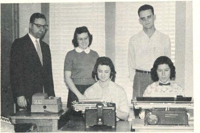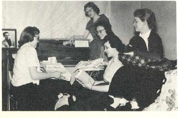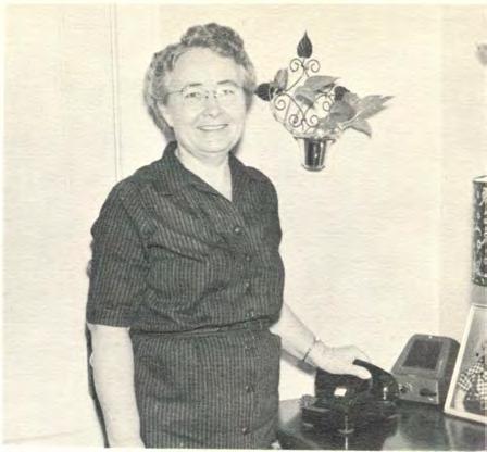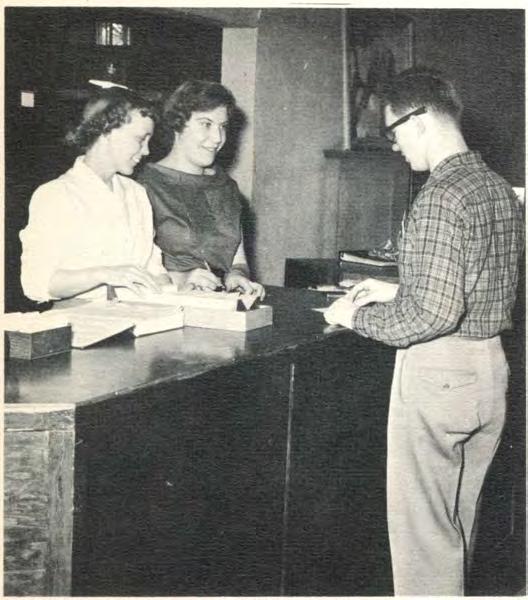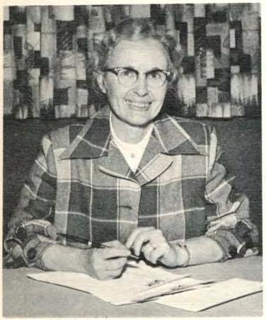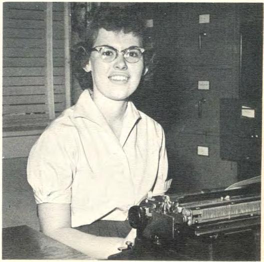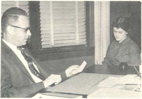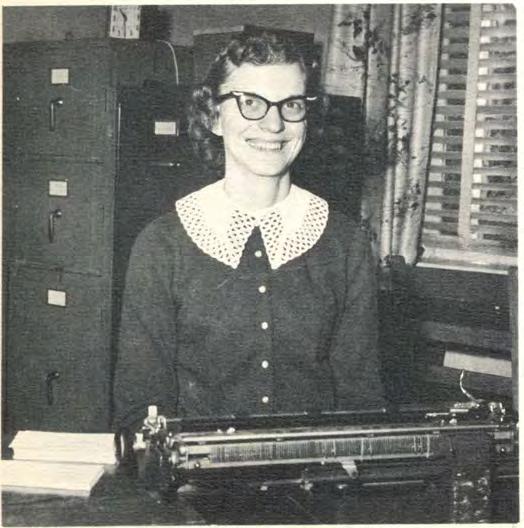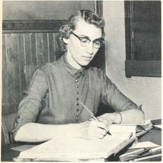 One might succeed in hiding his grades from a friend or roommate, but there is one who finds it her job to record all grades and to formulate transcripts. Mrs. Leona McConnell Meek as college recorder works in cooperation with the reg1strar's office by carefully recording grades, distributing gradereports, maintaining student files and making out transcripts. Her behind the scene efforts often go unrewarded, but without them the administration of the college would be incomplete.