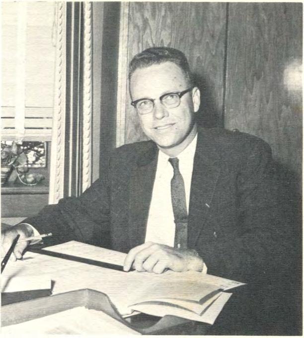 Today's society plagued with monetary prob· lems might find the solution for these problems in the wise calculations of.Bethany Nazarene College's able financial administrator, Mr. Harry Craddock. He has earned the admiration of all who know him for his ability at managing the fiscal affairs of our college. He is always ready to listen to student financial problems and offers his assistance in solving them. His friendly smile is a welcome sight to the student seeking his advice and sugg�stions. He is also interested in the individual student with any personal problem outside the financial realm.