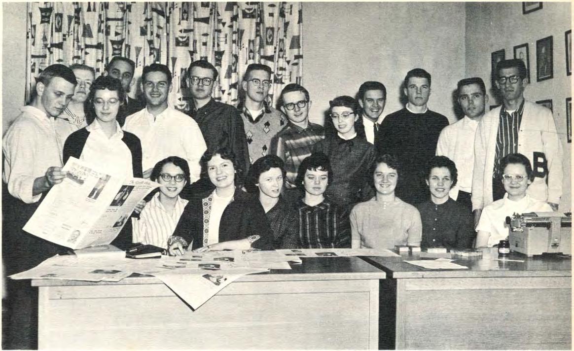The Dean of Students, Dr. Vernon Snowbarger, and his competent office staff have the responsibility of innumerable phases df college life: t:arrying out disciplinary measures, recording class and chapel cuts, registering student cars, processing class absences and many other details which must be taken eare of. But more important than these is the fact that Dr. Snowbarger is always ready and more than willing to counsel with students who come to him with their problems. He is much more interested in serving the students in this capacity than in dealing with them in a disciplinary way. Since counseling is a major interest of his, fellows and girls alike, with their varying problems, come to Dr. Snowbarger because they know he is ready to listen to their problems and capable of helping them find solutions.