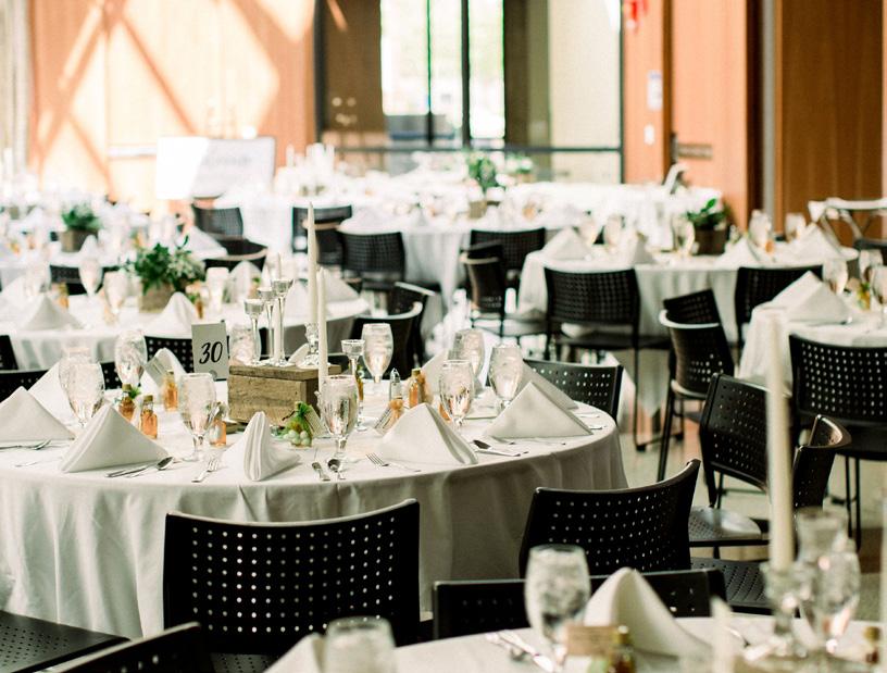 The Williams Center has beautiful space for meeting and catering functions. The Multipurpose room is the predominant banquet facility and can be set-up to meet your organization’s needs. The Multipurpose room is available for banquets, receptions, lectures, concerts, dances, holiday parties, weddings and major conferences. The Multipurpose room can comfortably seat up to 400 patrons in a theatre-style setting, and can accommodate up to 355 patrons for banquets. The size of the stage affects seating. The chart below gives an estimate of room capacity for various Multipurpose room banquets.