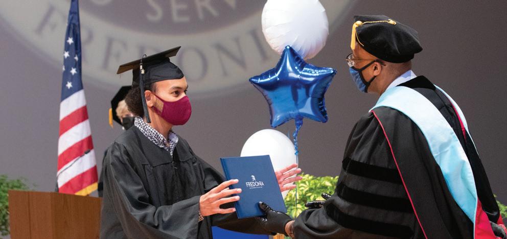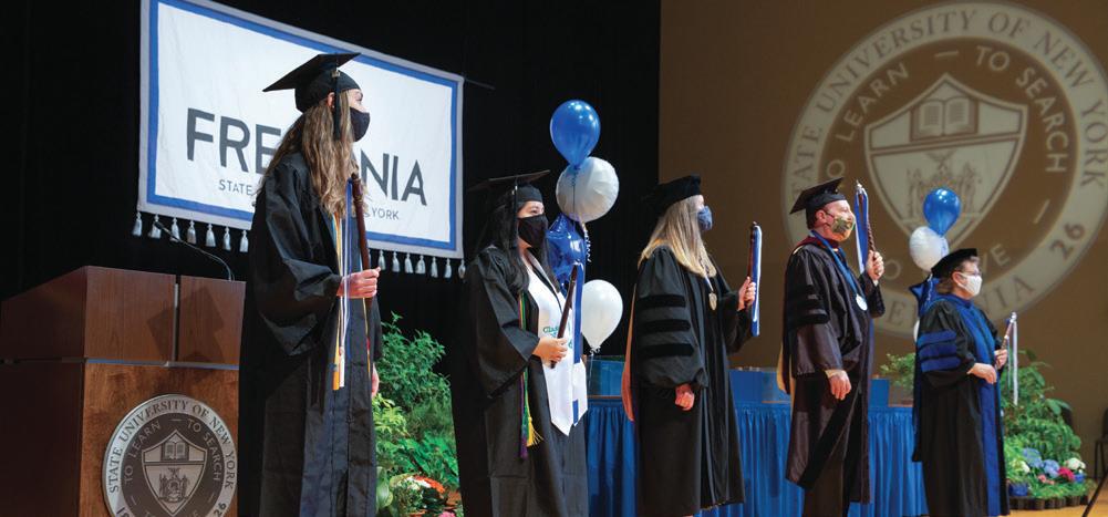 Fredonia’s academic success was on display this spring when the Class of 2021 and the Class of 2020 took part in a hybrid-type Commencement ceremony. Congratulations to our graduates! I am so proud of them for persevering through a pandemic to complete their college degree. You can read how the university honored the Class of 2021 inside this publication.