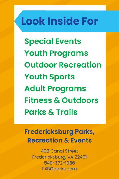 Sign up for Fredericksburg Parks, Recreation & Events’ email newsletter to receive reminders for registration deadlines, class sign-ups, upcoming events and trips.