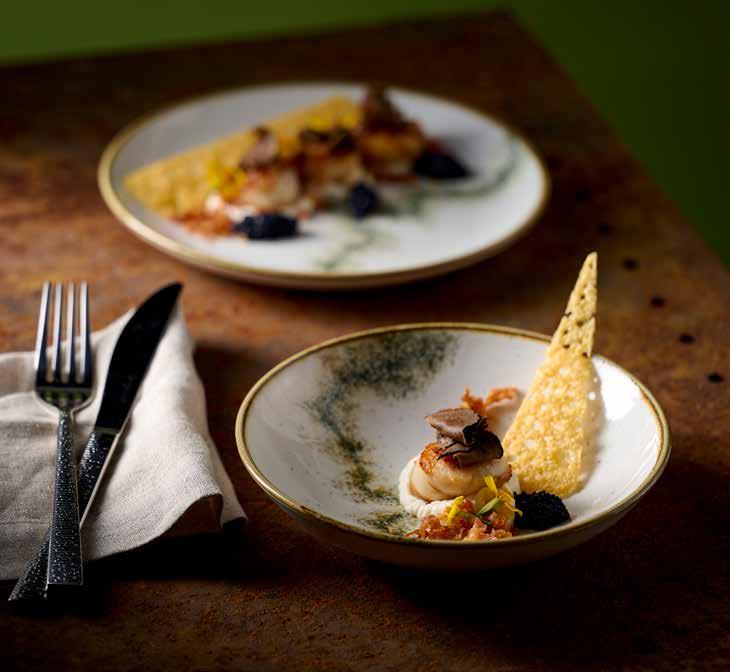 Stonecast es una emocionante colección de productos rústicos decorados a mano inspirados en los cambios de estación y en ingredientes frescos. Decorado a mano, terminado con un fino moteado y borde rústico en color marrón dorado, Stonecast está diseñado en diferentes estilos para adaptarse a todo tipo de ambientes hosteleros. Presentamos Stonecast Truffle, un tono marrón cálido, perfecto para mezclar con Nutmeg Cream y Peppercorn Grey para obtener una paleta de colores apagados. Para la primavera de 2025 también se han introducido cuencos complementarios y nuevas formas de Profile, ideales para una mesa rústica.