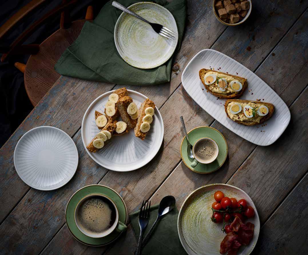 Stonecast is an exciting collection of rustic and handdecorated products inspired by the changing seasons and fresh ingredients. Hand decorated and then finished with a fine speckle and rustic edge in a rich golden brown, Stonecast is designed in different styles to suit all manner of hospitality environments.