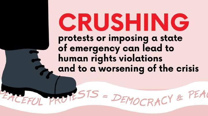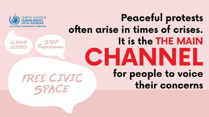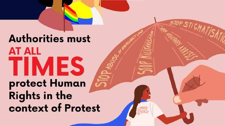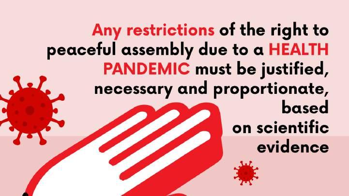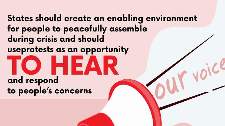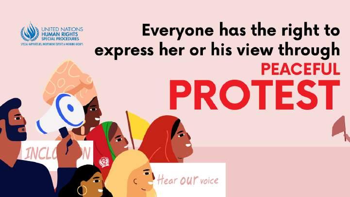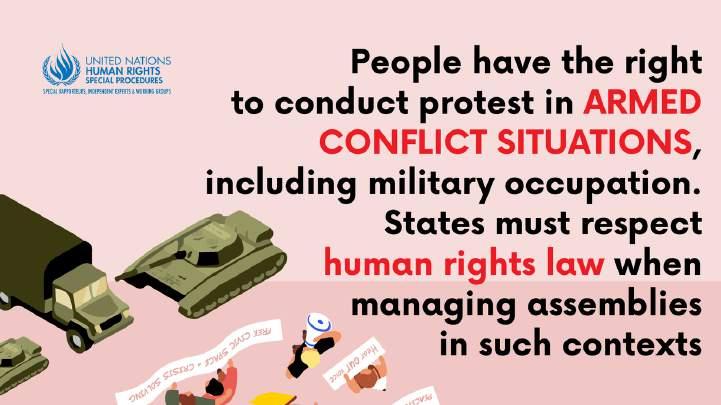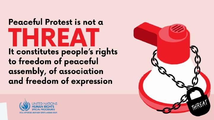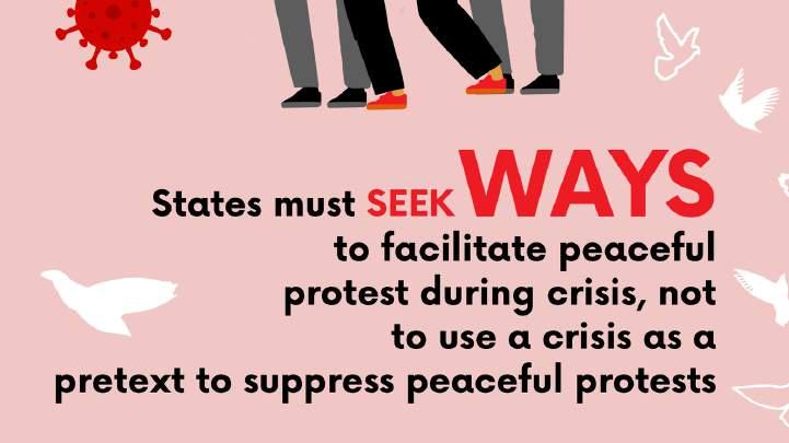 Flashcards with key messages from Thematic report by the UN Special Rapporteur on the Rights to Freedom of Peaceful Assembly and of Association, Clément N. Voule on Protecting human rights in the context of peaceful protests during crisis situations (2022): https://issuu.com/freeassemblyandassociation_formersrvoule/docs/protection_of_human_rights_in_the_context_of_prote?fr=xKAE9_zU1NQ