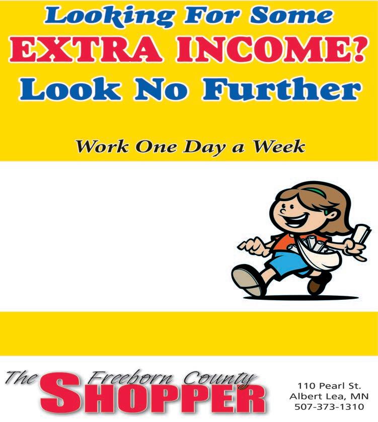 Page 12 • Tuesday, October 11, 2022 • FREEBORN COUNTY SHOPPER ROUTES NOW OPEN Delivering the FREEBORN COUNTY SHOPPER Earn Some Extra Cash! Get Some Exercise! Be Independent! Call 507-373-1310 for more information