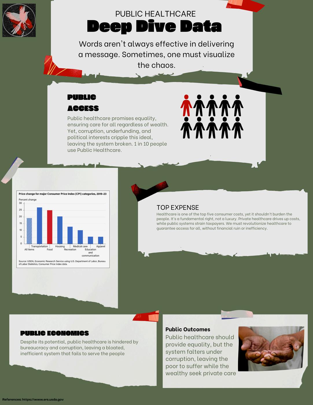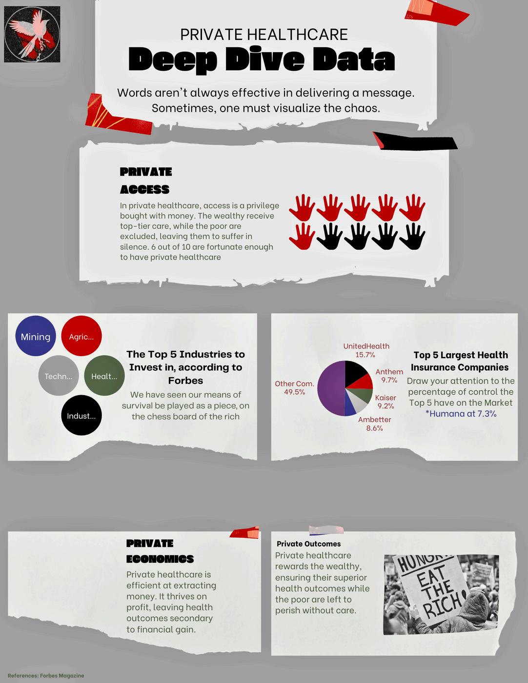 The time has come to dismantle the corporate structure that profits off of illness and suffering. The healthcare system as it stands is a weapon of oppression, designed to keep the working class, the poor, and the marginalized at the mercy of private insurance companies that see people as nothing more than numbers on a spreadsheet. We cannot and will not accept a system that profits off the backs of the sick and the vulnerable. This is a call to arms in the fight for the healthcare we all deserve.