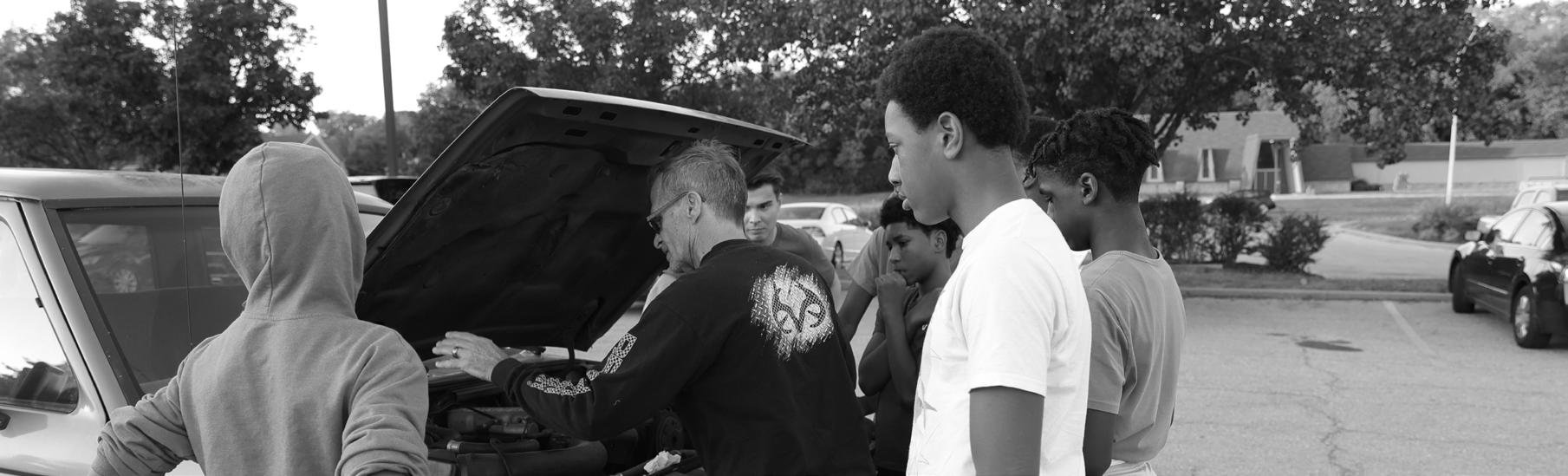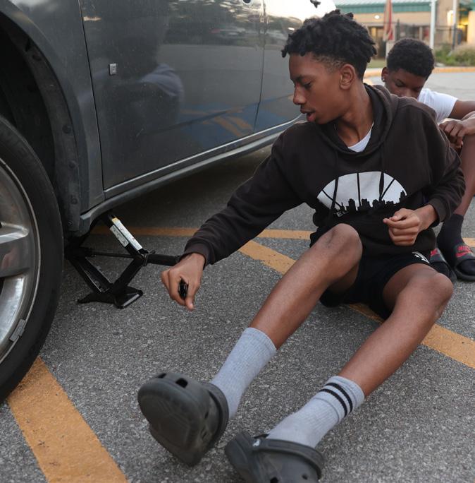 We do a great job on the court cultivating disciples. Off the court we do a great job with Bible studies. This fall we did something different off the court. We decided to teach them how to change tires, put on a spare tire, and check their fluids. Needless to say, the young men loved it.