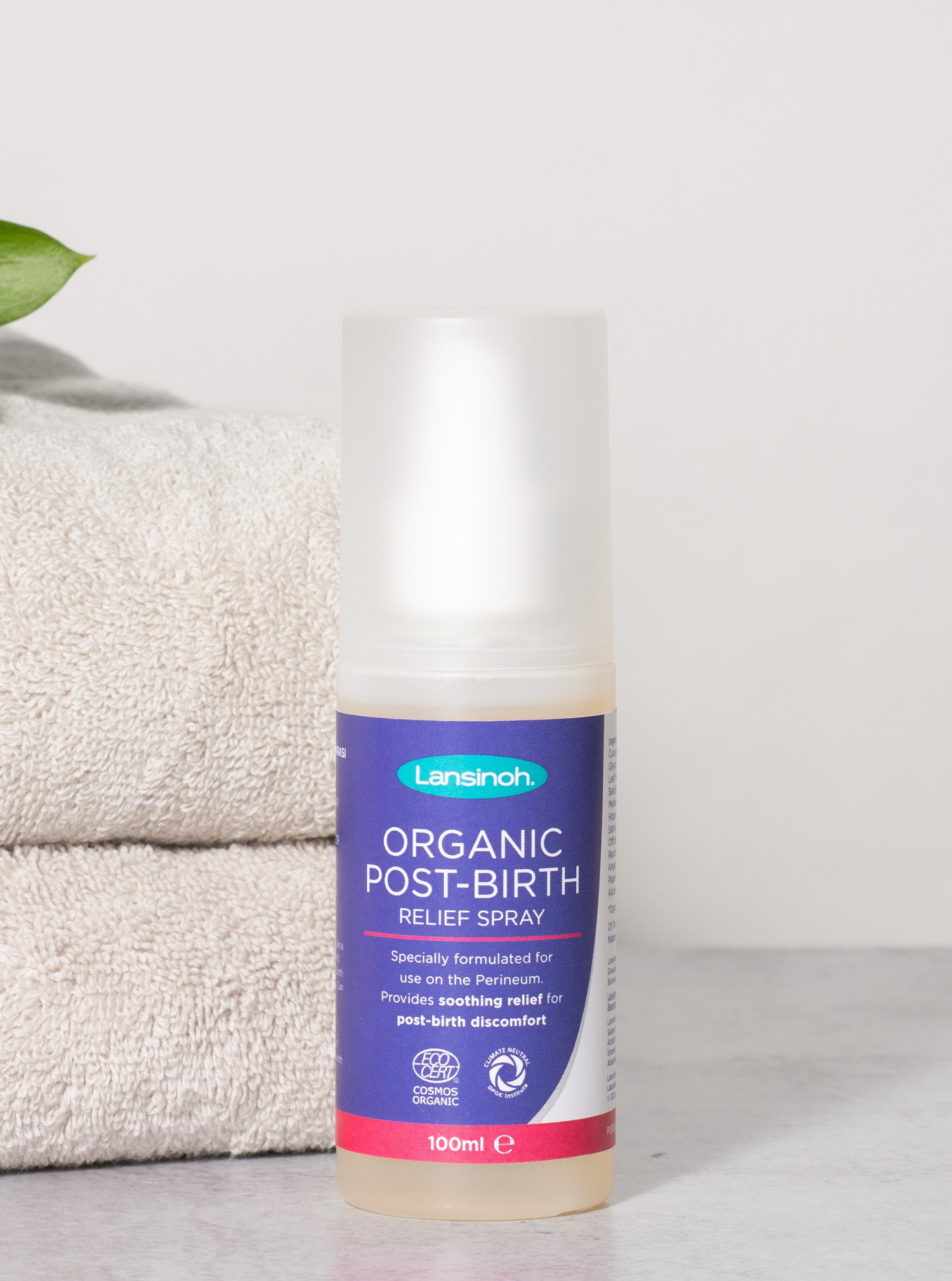 En unik formular af økologiske urter til at køle og lindre underlivet efter fødsel og bristelser. Lansinoh Organic Post-Birth Relief Spray er et unikt produkt, der hjælper mødre og specielt førstegangsfødende med et godt efterfødselsforløb. Indeholder 99% naturlige ingredienser og urter som troldnød og aloe vera. For ekstra kølende effekt kan man opbevare sprayen i køleskabet. Kan købes på apotekerne, i Matas og diverse webshops. Vejl. pris: 149,95