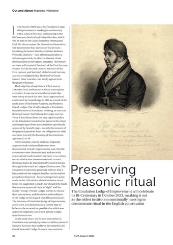 The official journal of the United Grand Lodge of England Issue 63 – Autumn 2023