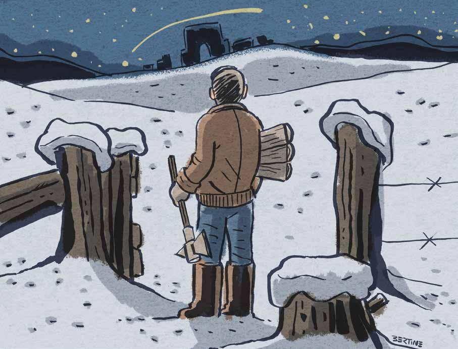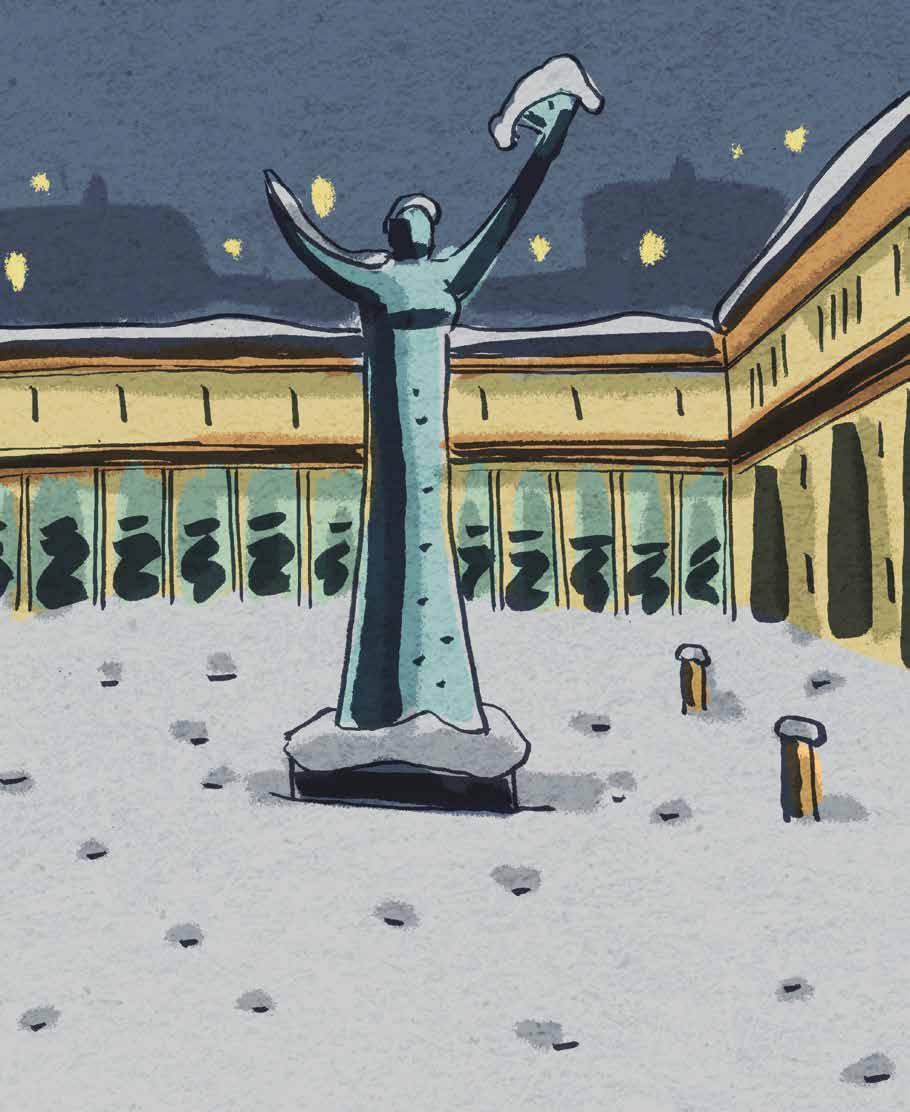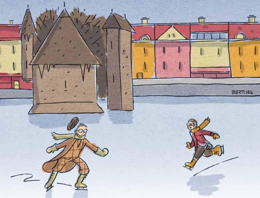 Traces d’hiver par chez nous Pour cette carte blanche hivernale, Bastien Nere a glissé dans chacune de ses six illustrations un monument emblématique de notre région.