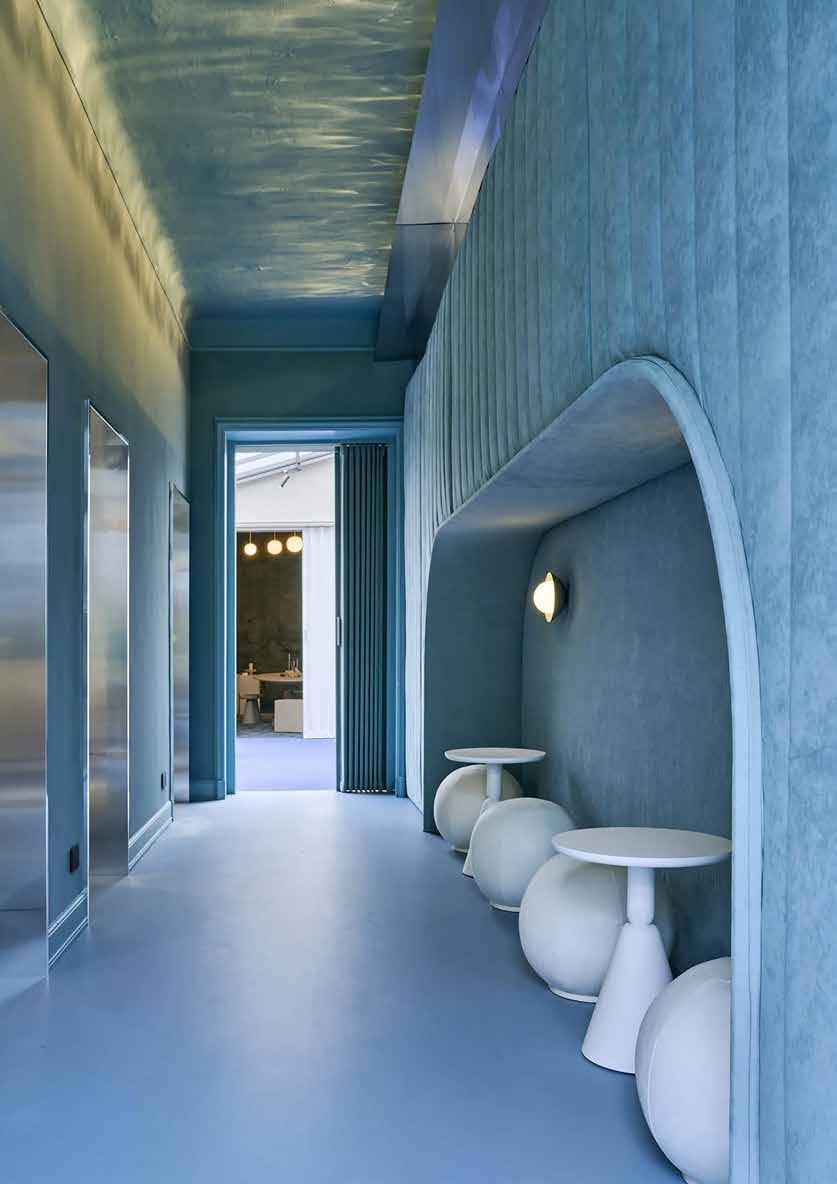LE MONDE COMME TERRAIN DE JEU À Paris, Dovain Studio a signé le design intérieur et l’éclairage sur-mesure d’un boutiquehôtel confidentiel dans le Marais, mêlant verre soufflé, laiton poli et textiles raffinés dans une atmosphère onirique. En Italie, sur la côte amalfitaine, la marque a collaboré à l’aménagement d’une villa contemporaine, imaginant des pièces inspirées des paysages marins et des traditions artisanales locales.
