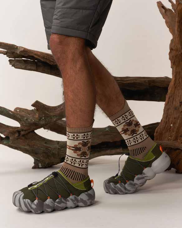 Conçu comme un compagnon de fin de journée en montagne, le Hover est un modèle ultraléger qui allie audace et haute technicité (mousse bio-basée super amortissante, semelle Ortholite, isolation Thermolite, traitement antibactérien, pour les odeurs de pieds devant la télé, et semelle extérieure Octopus pour coller à la route mouillée par le génépi. Il s’utilise aussi bien après une randonnée ou pour aller promener le chien.