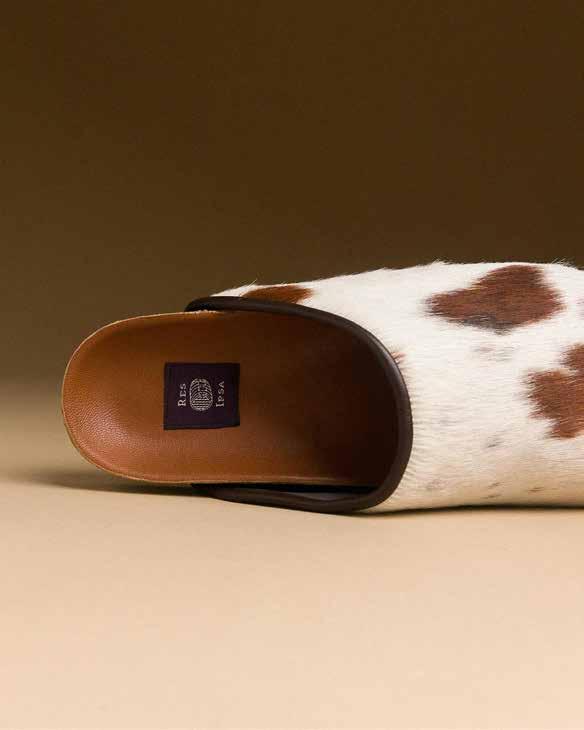 RES IPSA (qui signifie « la chose parle d'elle-même » en latin) a été fondée en 2013 par deux avocats, Josh et Odini, insatisfaits par l'uniformité des accessoires professionnels. Leur aventure a commencé par la création de leurs propres cravates. Initialement centrée sur des accessoires en tissus luxueux, la marque a ensuite évolué vers une vision unique et durable. Inspirés par leurs voyages, ils créent désormais des pièces uniques à partir de matériaux vintage, recyclés et réutilisés, fabriquées à travers le monde. Dans leur atelier, ils tissent eux-mêmes leurs tissus, et uniquement en quantités nécessaires pour répondre à la demande et réduire les déchets. L'accent est résolument mis sur l'unicité, la qualité et l'histoire de chaque produit. Ces sabots Cowhide signature sont fabriqués artisanalement à Marrakech en cuir de vache recyclé de l'industrie agroalimentaire. Alliant confort naturel (semelle intérieure en liège moulée au pied) et durabilité (semelle en caoutchouc), leur design s'inspire des chaussures historiques des paysans européens du XIIIe-XIVe siècles et d'un voyage à Istanbul. Chaque paire est unique, avec une finition en cuir et une doublure en daim.