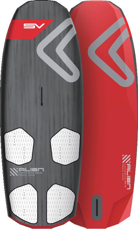 PWA の新しいレースフォーマット においてフォイルスピードの新た な記録を叩き出すボード。オリジ ナルのウォータードロップカットア ウェイは、少ないセイルプレッ シャーでテイクオフスピードを上 げることができる。さらに、テイル 周辺のボリュームを減らしたこと で、フォイル性能を効率よく発揮さ せることができ、すぐにフライトが 可能となった。