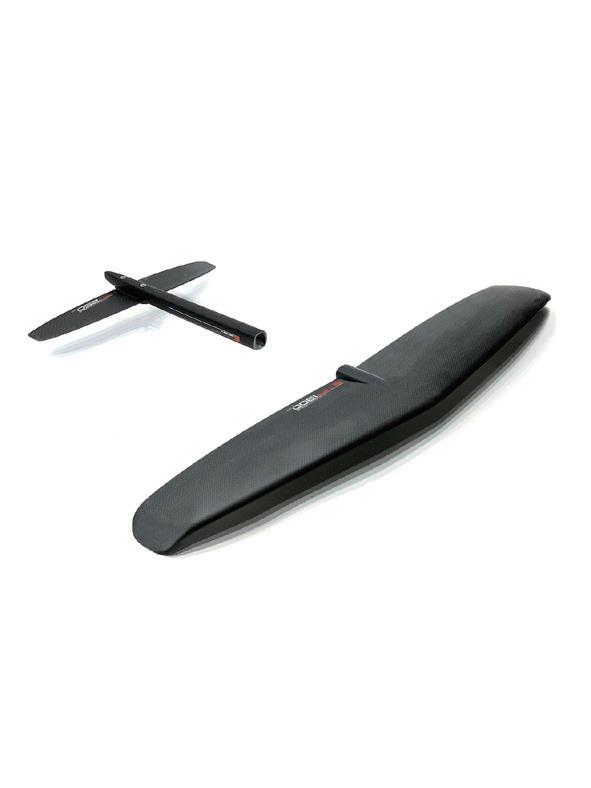 ハイアスペクト比のフロントウィング で最大限のグライド、ハイスピード、 ハードカービング用の上級モデル。 フルカーボン仕様。