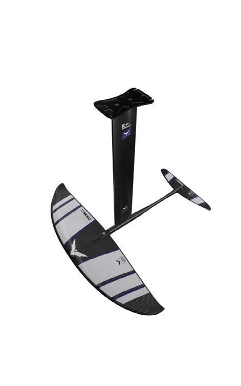これまでで最も簡単なフォイル。機動⼒があり、 スムースで、最低速でフライトする。⻑いフューサ レージは最⾼の安定性を提供する。最も軽い⾵ で、フォイルでフライトしたい⼈、ジャイブなどを 練習したい⼈、⼩さめのセイルを使⽤したい⼈向 けである。
