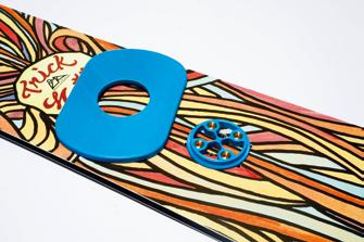 WOODCORE、GLASSFIBER WOODCOR E な ら で は の 柔 軟 性と 反 発 力、あらゆる 方 向 からのトリックアプロ チを 可 能 と す る T WI N 形 状 が 特 徴 。 まさにトリックに特 化したボ ドが誕 生した。
