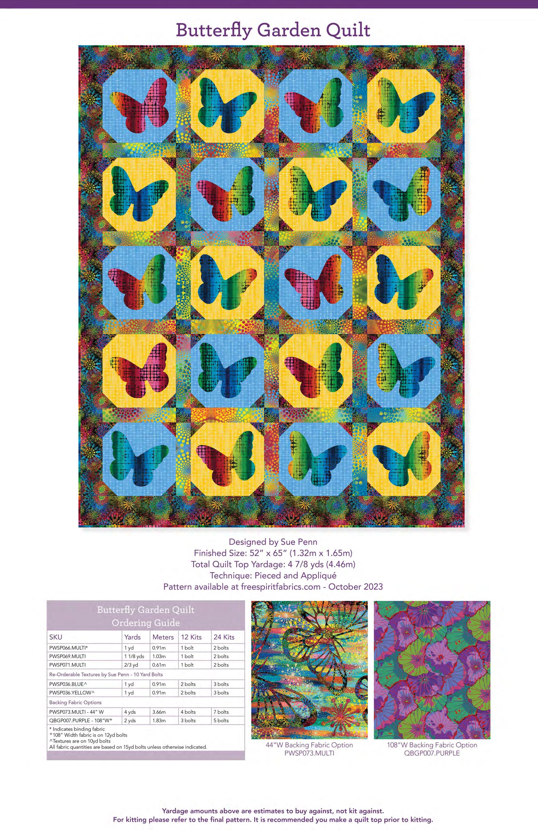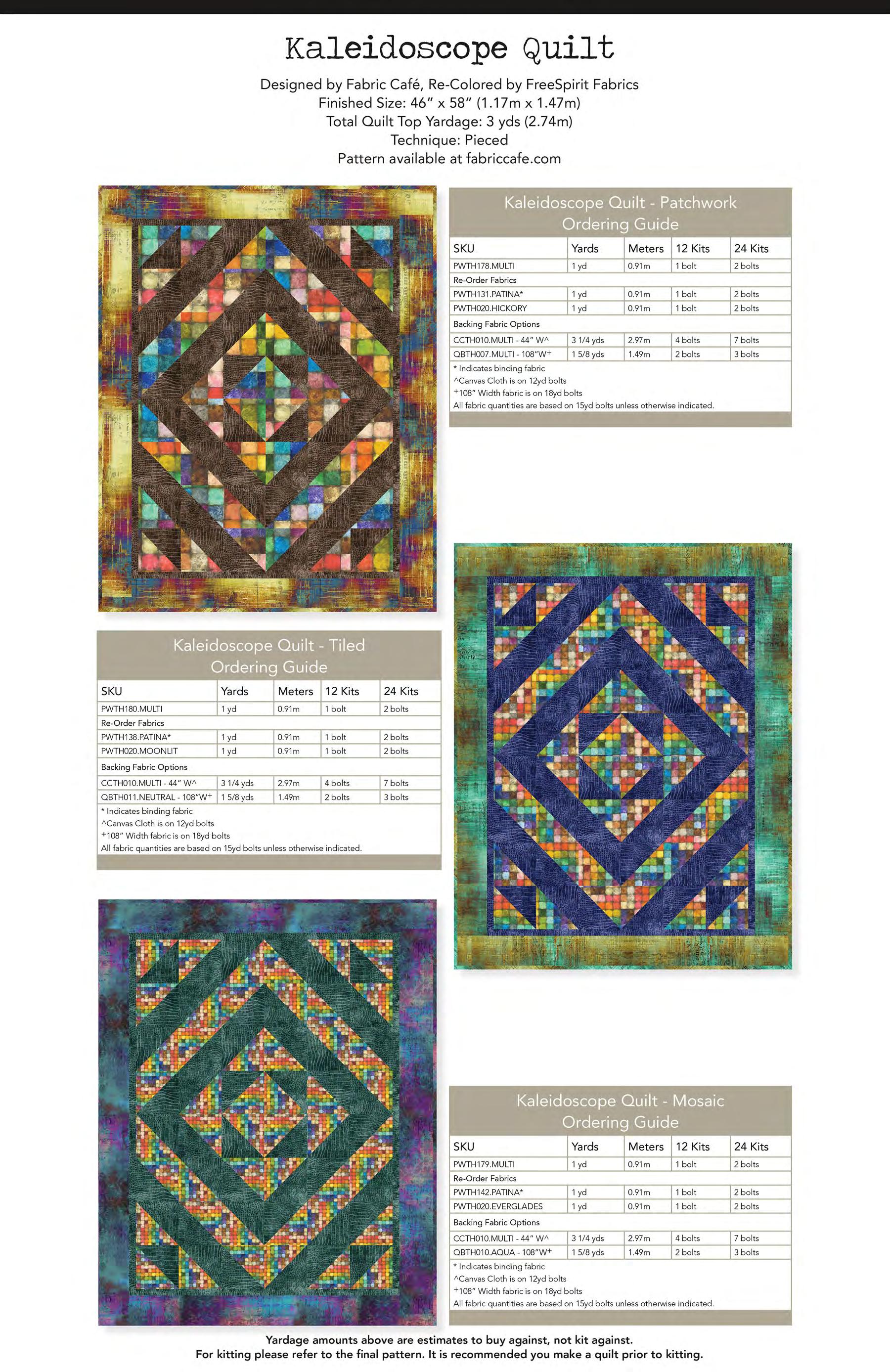 Yardage amounts above are estimates to buy against, not kit against. For kitting please refer to the final pattern. It is recommended you make a quilt top prior to kitting.