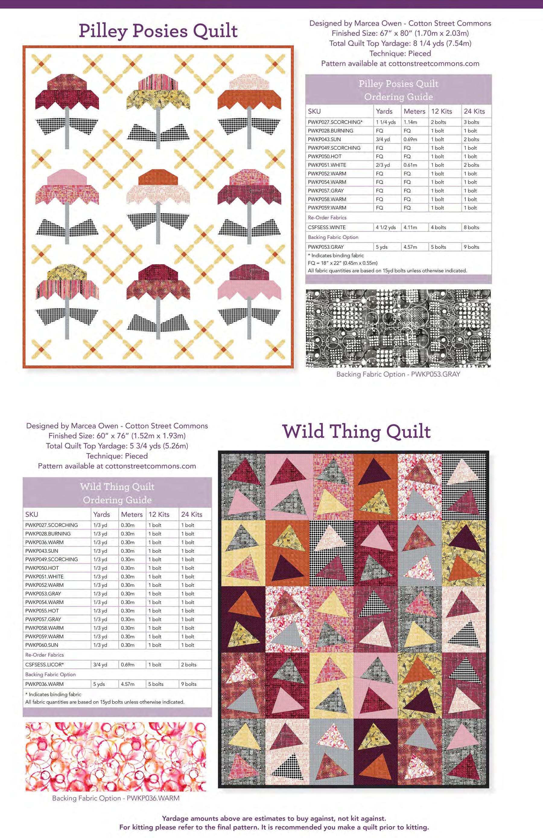 SKU Yards Meters 12 Kits 24 Kits February 2023 Collection PWPJ029.PURPLE 5/8 yd 0.57m 1 bolt 2 bolts PWPJ029.MAROON 7/8 yd 0.80m 1 bolt 2 bolts PWPJ029.COOL 5/8 yd 0.57m 1 bolt 2 bolts PWPJ111.BLACK 5/8 yd 0.57m 1 bolt 2 bolts PWBM081.WHITE 1/2 yd 0.46m 1 bolt 1 bolt PWBM081.CRIMSON 1/2 yd 0.46m 1 bolt 1 bolt PWBM081.CITRUS 1/2 yd 0.46m 1 bolt 1 bolt PWPJ112.MAROON* 1 yd 0.91m 1 bolt 2 bolts August 2023 Collection PWPJ124.LAVENDER 1 yd 0.91m 1 bolt 2 bolts PWPJ124.GREEN 5/8 yd 0.57m 1 bolt 2 bolts PWBM088.YELLOW 1/2 yd 0.46m 1 bolt 1 bolt PWPJ119.CONTRAST 5/8 yd 0.57m 1 bolt 2 bolts PWPJ122.GREY 7/8 yd 0.80m 1 bolt 2 bolts PWPJ122.GREEN 7/8 yd 0.80m 1 bolt 2 bolts Re-Order Fabrics PWPJ096.CONTRAST 3/4 yd 0.69m 1 bolt 2 bolts PWPJ096.TAWNY 3/4 yd 0.69m 1 bolt 2 bolts PWPJ062.CRIMSON 1 yd 0.91m 1 bolt 2 bolts PWGP148.AQUAX 1/2 yd 0.46m 1 bolt 1 bolt PWGP091.BLACK 2 yds 1.83m 2 bolts 4 bolts Backing Fabric Options PWPJ062.CRIMSON - 44” W 5 1/8 yds 4.69m 5 bolts 9 bolts QBPJ004.NATURAL - 108”W+ 2 1/4 yds 2.06m 3 bolts 5 bolts * Indicates binding fabric +108” Width fabric is on 12yd bolts All fabric quantities are based on 15yd bolts unless otherwise indicated.