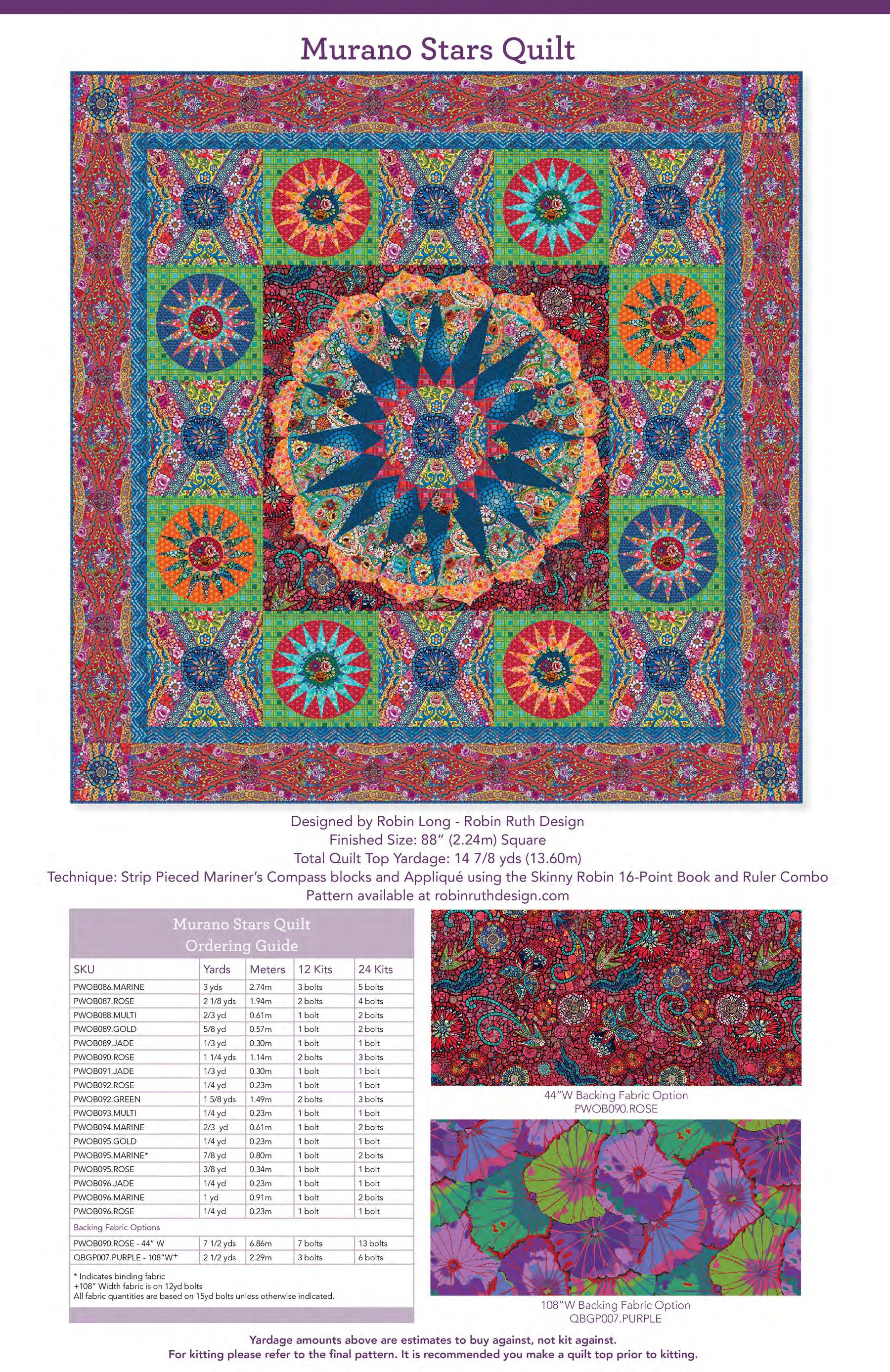 * Not Included: Quilt Back Fabric 2 2/3 yards (2.44m) of QBGP007.PURPLE 108” (274cm) quilt back fabric