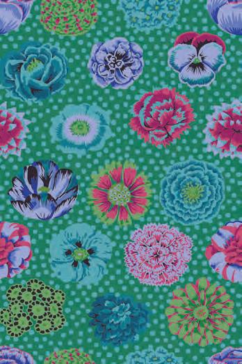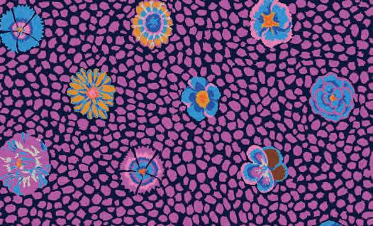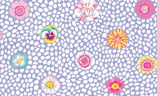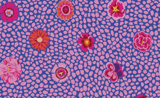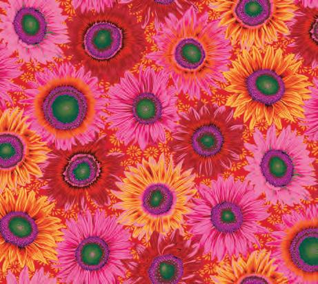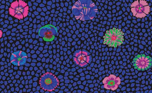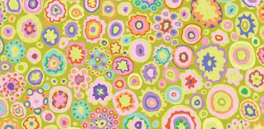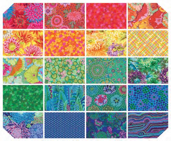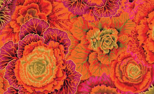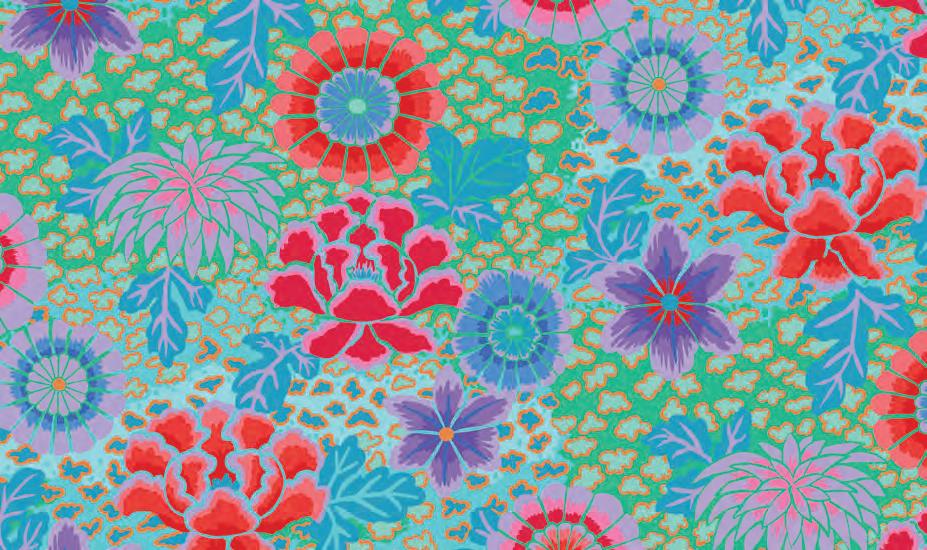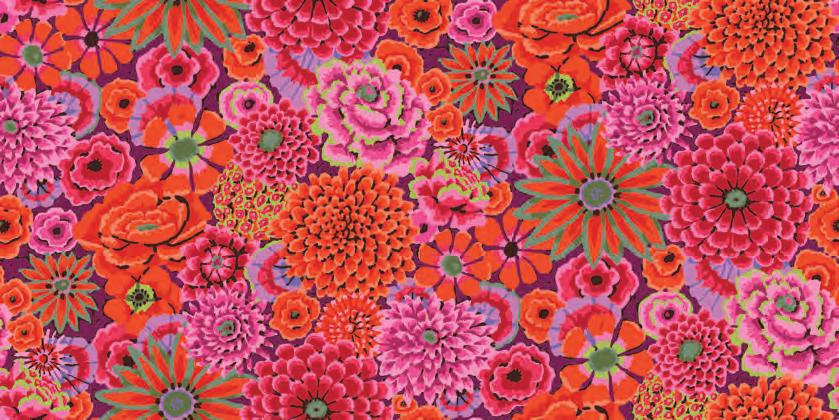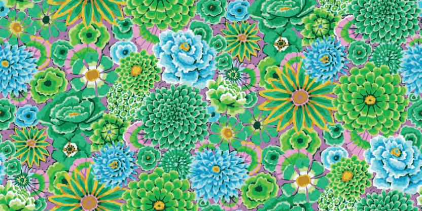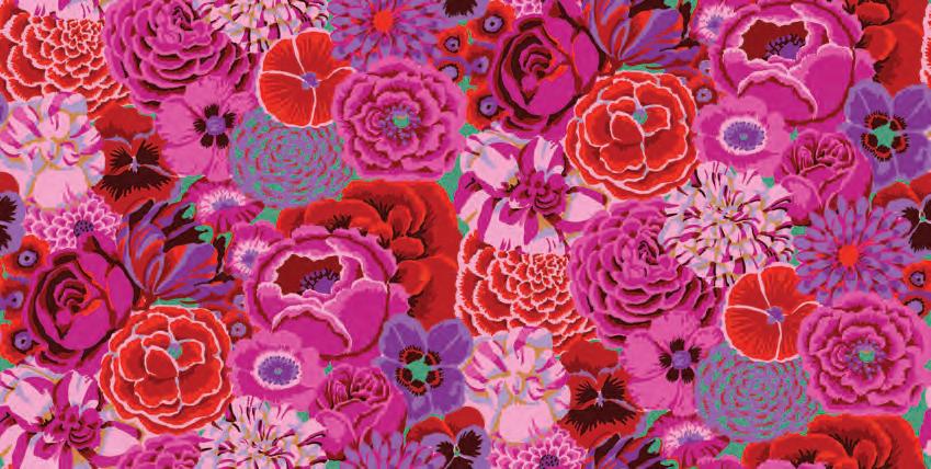 Seed Packet Features Kaffe Fassett Collective August 2022 and Kaffe Fassett Collective Classics Size: 67” x 82” (1.70m x 2.08m) Designed by Kaffe Fassett and Liza Lucy From Kaffe Fassett’s Bold Blooms: Quilts and Other Works Celebrating Flowers Pieced by Nancy Carney Quilted by Janell Lutz Pattern available at freespiritfabrics.com