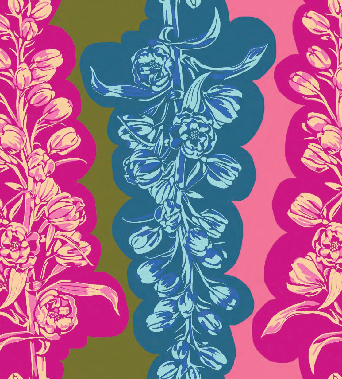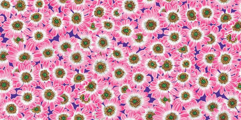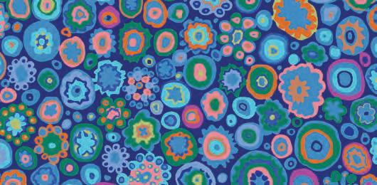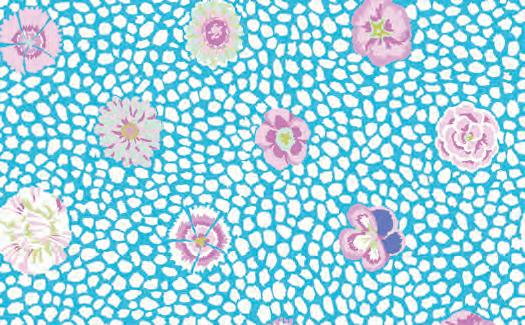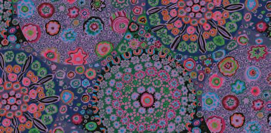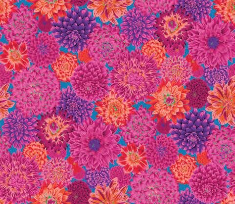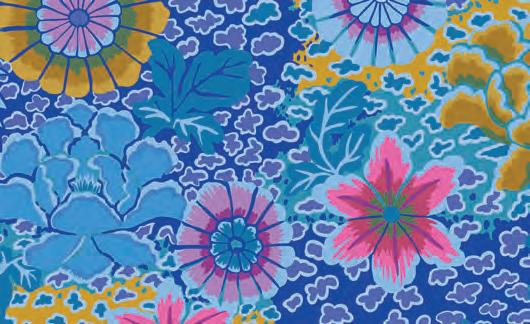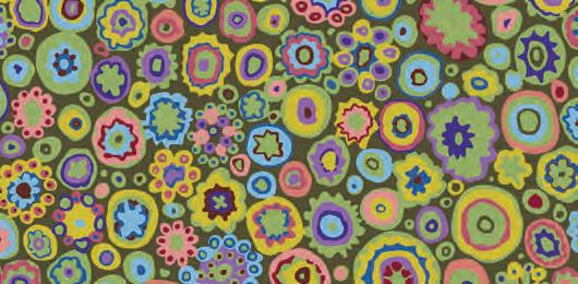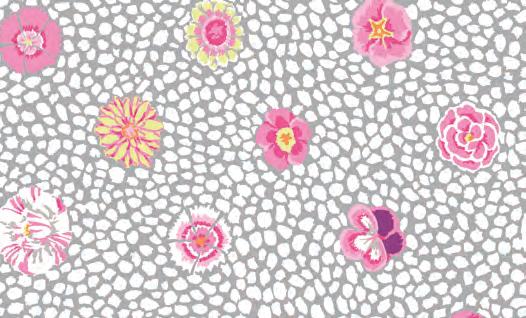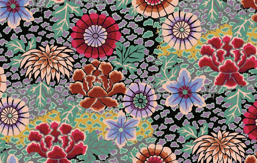 Seed Packet Features Kaffe Fassett Collective August 2022 and Kaffe Fassett Collective Classics Size: 67” x 82” (1.70m x 2.08m) Designed by Kaffe Fassett and Liza Lucy From Kaffe Fassett’s Bold Blooms: Quilts and Other Works Celebrating Flowers Pieced by Nancy Carney Quilted by Janell Lutz Pattern available at freespiritfabrics.com