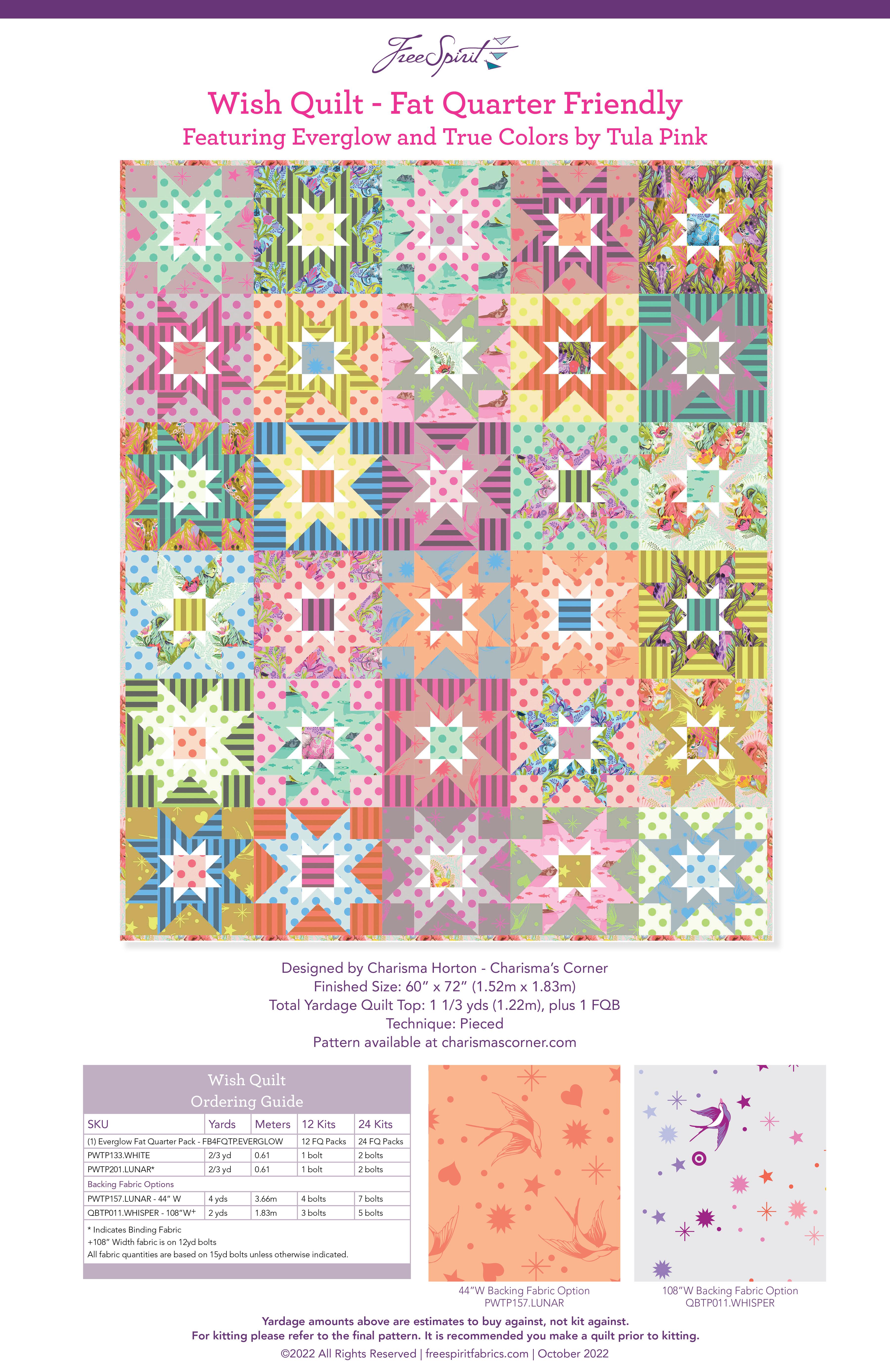 Quarter PWTP203.MYSTIC PWTP118.MOONBEAM Neon True Fat FB4FQTP.EVERGLOW Fat Quarter 32 Pieces PWTP118.MYSTIC PWTP157.MYSTIC PWTP069.MYSTIC PWTP202.COSMIC PWTP118.COSMIC PWTP157.COSMIC PWTP069.COSMIC PWTP204.NOVA PWTP118.NOVA PWTP157.NOVA PWTP069.NOVA PWTP201.LUNAR PWTP118.LUNAR PWTP157.LUNAR PWTP069.LUNAR PWTP203.MOONBEAM PWTP157.MOONBEAM PWTP069.MOONBEAM PWTP201.KARMA PWTP118.KARMA PWTP157.KARMA PWTP069.KARMA PWTP204.SPIRIT PWTP118.SPIRIT PWTP157.SPIRIT PWTP069.SPIRIT PWTP202.AURA PWTP118.AURA PWTP157.AURA PWTP069.AURA ©2022 All Rights Reserved | freespiritfabrics.com Fabric patterns are not shown at actual size. This presentation is a fair representation of design and color of each fabric. The final fabrics may have very minimal changes. New! Neon True Colors Fabric Pre-Cuts Re-Orderable 2023-2024 FB6CPTP.NEONTRUEFB4DRTP.NEONTRUE FB610TP.NEONTRUE 5” Charm Pack 42 Pieces Design Roll 40 Pieces 10” Charm Pack 42 Pieces PWTP118.MYSTIC** PWTP157.MYSTIC** PWTP069.MYSTIC PWTP118.COSMIC** PWTP157.COSMIC** PWTP069.COSMIC PWTP118.NOVA** PWTP157.NOVA** PWTP069.NOVA PWTP118.LUNAR** PWTP157.LUNAR** PWTP069.LUNAR* PWTP118.MOONBEAM** PWTP157.MOONBEAM** PWTP069.MOONBEAM PWTP118.KARMA** PWTP157.KARMA** PWTP069.KARMA PWTP118.SPIRIT** PWTP157.SPIRIT** PWTP069.SPIRIT PWTP118.AURA** PWTP157.AURA** PWTP069.AURA* *Fabric is included 1 time in design rolls and 2 times in charms ** Fabric is included 2 times in design rolls and charms ©2022 All Rights Reserved | freespiritfabrics.com Fabric patterns are not shown at actual size. This presentation is a fair representation of design and color of each fabric. The final fabrics may have very minimal changes.