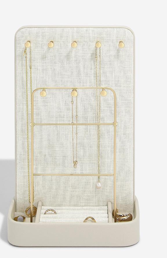 Wit alu frame met taupe kussens en luifel, afgewerkt met houten details. H175 x B130cm Ref 183103 € 449 € 499