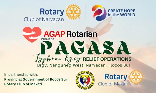 The Rotary Club of Narvacan, in partnership with its Brother Club Rotary Club of Makati and the Provincial Government of Ilocos Sur, braved the flooded river going to the Barangays of San Pedro and Nanguneg West Narvacan, Ilocos Sur, to deliver relief goods to residents who ever isolated due to flooding brought about by Typhoon Egay through its Project PAGASA relief operations The group distributed food packs, relief goods, blankets, and sleeping mats to the typhoon victims as a simple way of giving them hope after the recent typhoon