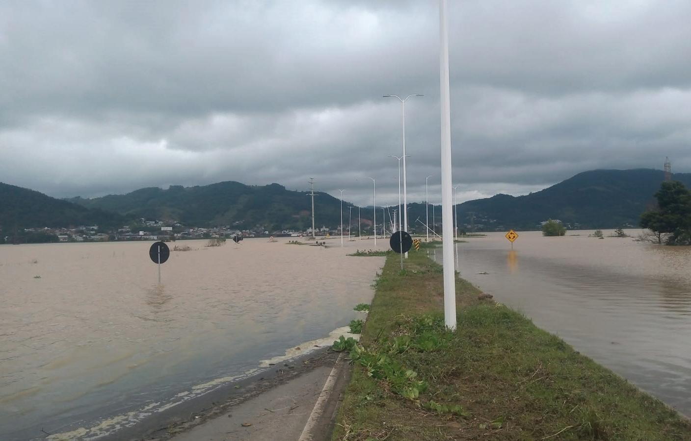 emergência mais de vinte municípios. São eles: Ara quari, Joinville, São Bento do Sul, Luiz Alves, Corupá, Guaramirim, Rio dos Ce dros, Campo Alegre, San to Amaro da Imperatriz, Benedito Novo, Palhoça, Rancho Queimado, São José, Águas Mornas, Antô nio Carlos, Armazém, São João Batista, Paulo Lopes, Florianópolis, Angelina, Biguaçu, Anitápolis, Tim bó, Schroeder e Brusque.