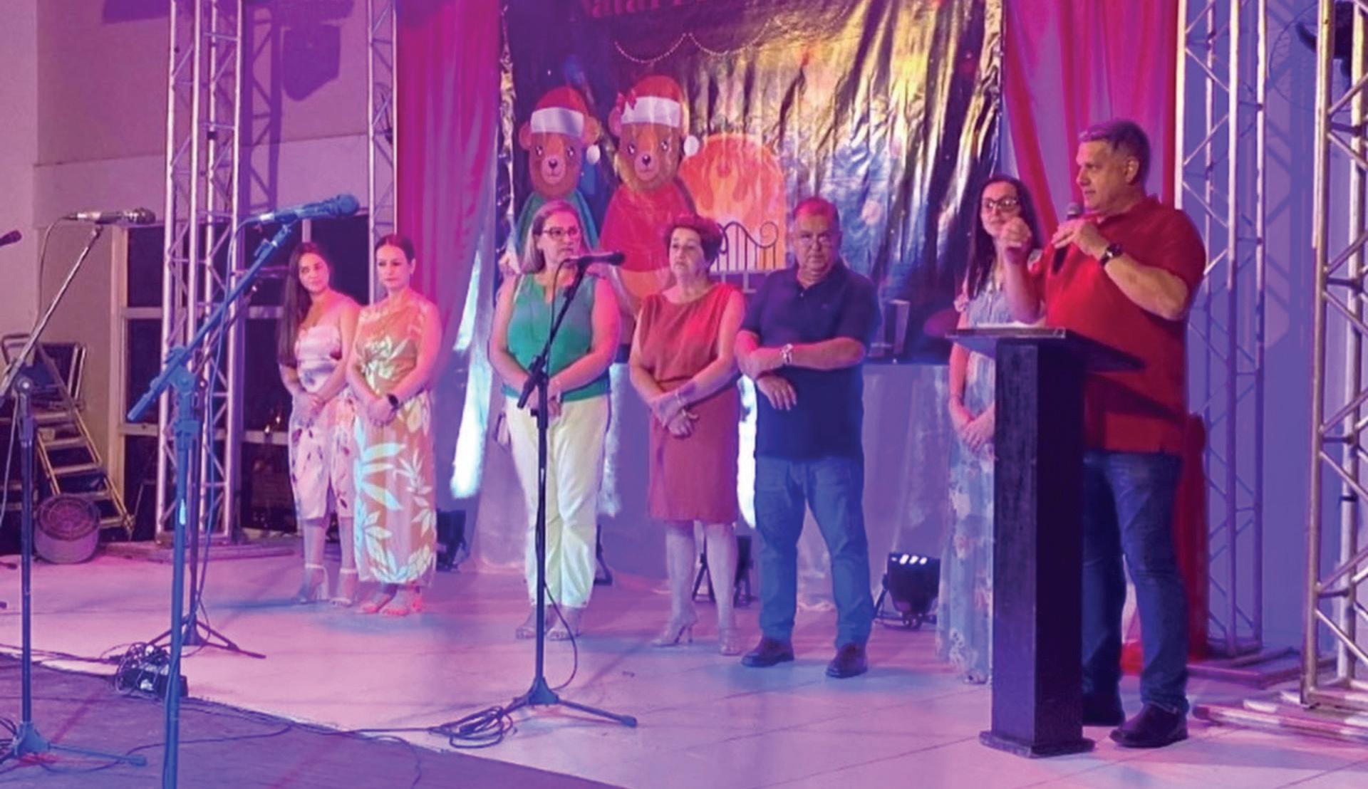 A noite contou com diversas atrações, que encantaram o público, como o trem da alegria, Coral Criança Feliz, parque inflável e personagens animados, entre outras ativi-