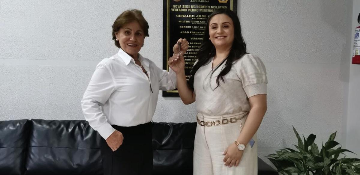 Momento histórico em Jaguaruna com duas mulheres se sucedendo na presidência do Legislativo: vereadora Terezinha Nandi transmitiu o cargo de presidente à colega Aline Bitencourt. Um dia depois, Bia Alves assumiu a presidência da Câmara em Capivari.