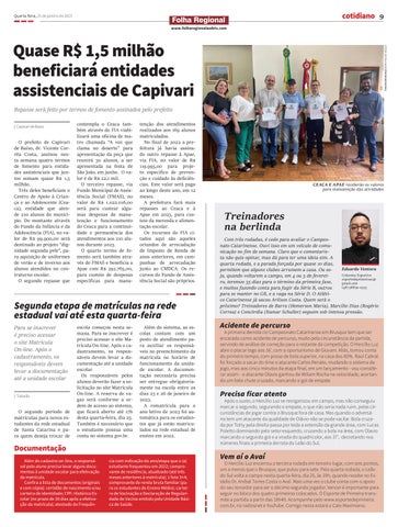Quarta-feira, 25 de janeiro de 2023 www.folharegionalwebtv.com 9 cotidiano