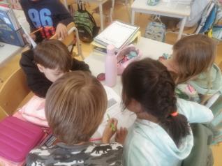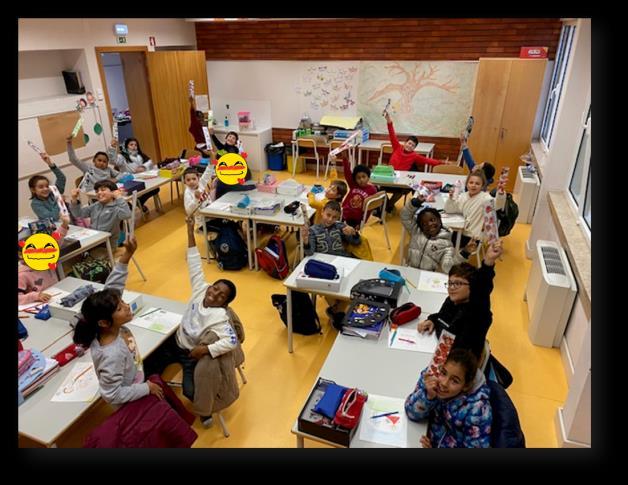 Este ano, a nossa sala está diferente. As mesas estão organizadas em grupos e nós estamos a gostar.
