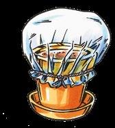 Krempel eine durchsichtige Plastiktüte über den Topf und fixiere sie mit einem Band oder einem Gummi.
