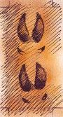 Finde zu jedem Tier die richtige Spur. Trage den Buchstaben der Tierspur in das Kärtchen am jeweiligen Tier ein.