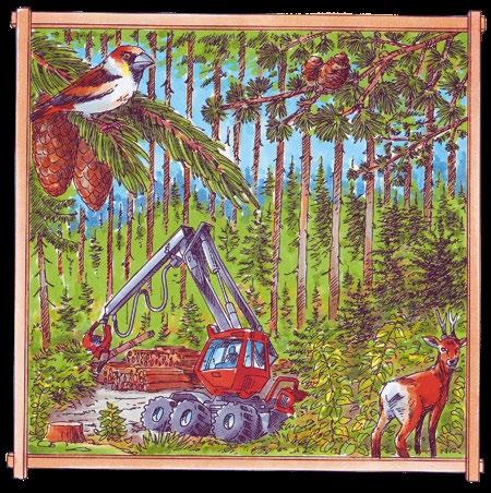 Der Förster organisiert das Fällen, Entasten und Sortieren der Baumstämme. Anschließend wird das Holz zum Sägewerk transportiert und dort entstehen Bretter und Balken.