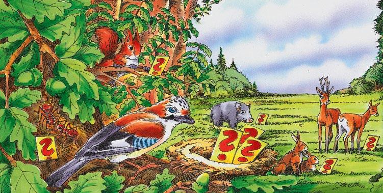 … ich bin Jacob der Eichelhäher. Kommt mit auf eine Entdeckungsreise durch den Lebensraum Wald. Gemeinsam lernen wir mehr über das Leben der Bäume und Tiere, erfahren, wie ein Schmetterling entsteht, und finden heraus, welche Blätter an welchen Bäumen wachsen.