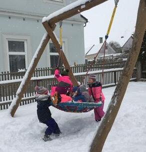 Außenfreifläche wurde auf insgesamt rund 850m2 erweitert, was den Kindern der Kinderkrippe und des Kindergartens noch mehr Möglichkeiten bietet, sich draußen auszutoben. Weiters wurde auch das Kindergartengebäude thermisch saniert, es wurden neue Fenster eingebaut, das Dach und die Eingangstüren erneuert sowie die Fassade wurde neu gedämmt.