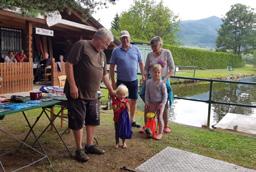 Der FVV „Schönes Kraubath“ lud im Rahmen des Kinder- u. Jugendsommers auch heuer wieder zu einer Runde mit dem Fahrrad quer durch Kraubath ein. Bei fabelhaftem Wetter veranstalteten wir einen tollen Familien-Radausflug. Da es bereits um 9 Uhr losging, mussten zuerst ein paar „Muntermacher-Übungen“ absolviert werden, dabei wärmten wir uns auf und im Anschluss bewältigten die Kinder sensationell ein paar Geschicklichkeitsübungen. Dann ging es los, unsere Strecke betrug ca. 13 km quer durch Kraubath – und um den Kindern bewusst zu machen, wie viele Platzerl es zum Ausrasten, Verweilen und Genießen in Kraubath gibt, zählten wir die „Kraubather Bankerl“ auf unserer Route. Unsere Runde begann am Kirchplatz, führte weiter über den Sportplatz, bis hin zum Bahnhof - Richtung „Tripstrü“, über die Bahnhofstraße wieder retour zum Tennisplatz und hinaus zum Biotop. Mehrere kleine Trinkpausen und eine kleine Stärkung erleichterten uns die Tour. Zum Schluss ging es weiter zu einer Runde um den Kraubather See. Dort wurden wir sehr herzlich von Fam. Winter-Steiner empfangen. Natürlich genossen wir noch das sommerliche Ambiente am See und gönnten uns eine kräftige Stärkung. Da die Kinder und auch die Väter noch genug Energie hatten, gab es am See noch ein hervorragendes Tischtennisspiel. Vom Kleinkind im Fahrradanhänger, bis hin zu Schulkindern waren alle Altersgruppen mit dabei! Es war