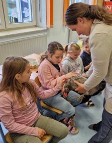 Anlässlich des Welternährungstages besuchten Marion Nestler und Sonja Hirn die 1. und 2. Klasse. Das Thema war „Das Ei“. Neben dem Streicheln der Hühner und Staunen über die Größe eines Straußeneis, erfuhren die Kinder viel Wissenswertes über die verschiedenen
