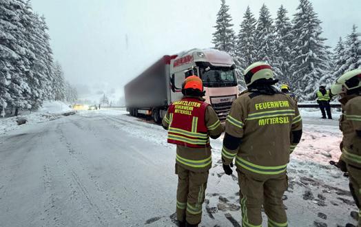 Aufgrund der starken Schneefälle kam ein LKW-Zug auf der Pass Thurn Straße nicht mehr von der Stelle. Die Einsatzkräfte der Feuerwehr Mittersill regelten den Verkehr und führten die Bergung mittels Seilwinde durch.
